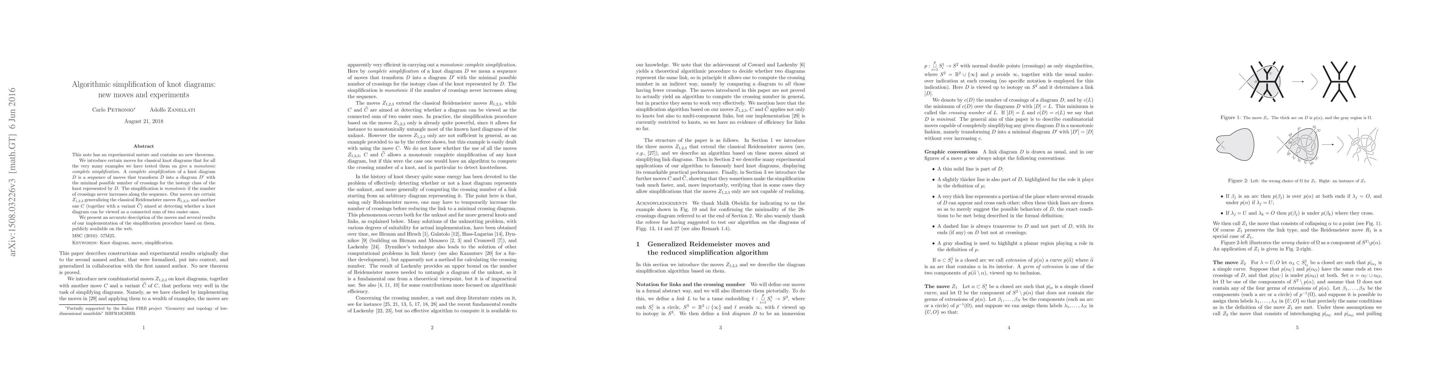 This paper introduces new moves for simplifying classical knot diagrams into their minimal crossing forms, generalizing the classical Reidemeister moves. The authors present an experimental implementation of these moves and share the results online.