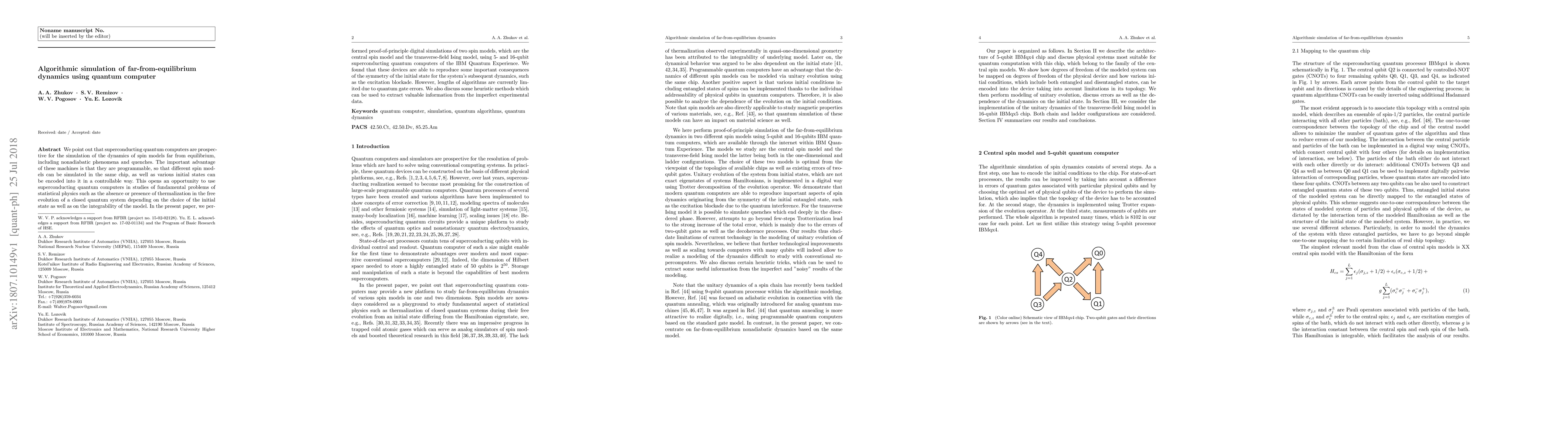 Researchers used superconducting quantum computers to simulate the dynamics of two spin models far from equilibrium, demonstrating potential for studying statistical physics phenomena like thermalization. The simulations showed promising results despite limitations due to quantum gate errors.