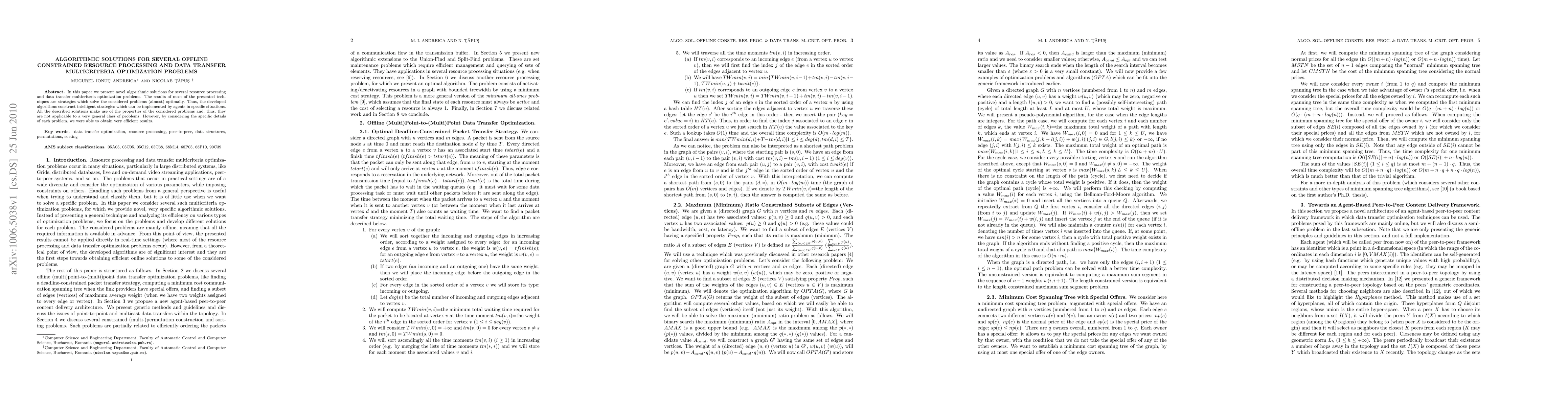 This paper introduces innovative algorithms for solving specific multicriteria optimization problems related to resource processing and data transfer. The developed strategies achieve near-optimal results by leveraging the unique properties of each problem, providing efficient solutions for particular scenarios.