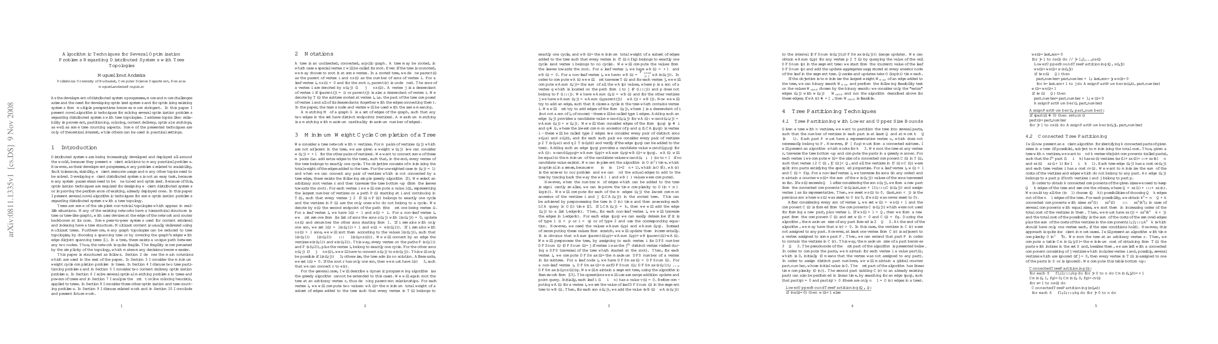 This paper introduces novel algorithmic techniques for optimizing distributed systems with tree topologies, addressing reliability, partitioning, coloring, content delivery, and optimal matchings. While some techniques are theoretical, others hold practical applications for system optimization.