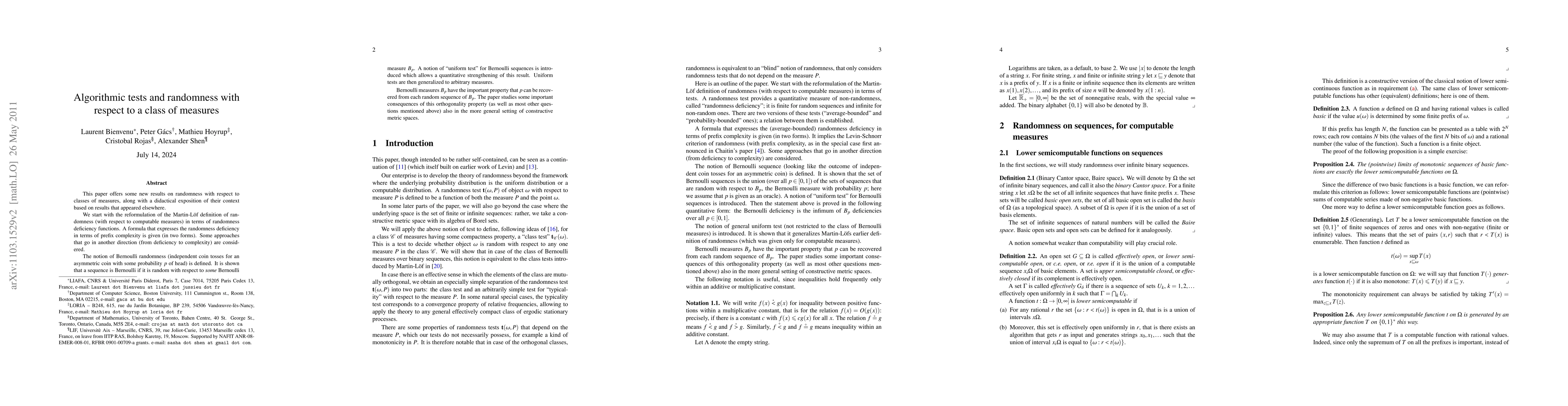 This paper explores various algorithmic tests for randomness across different measures, including computable measures on Cantor space and uniform randomness. It establishes equivalences between Hyppocratic randomness and uniform randomness for certain classes and discusses the implications for sparse sets and on-line randomness within the framework.