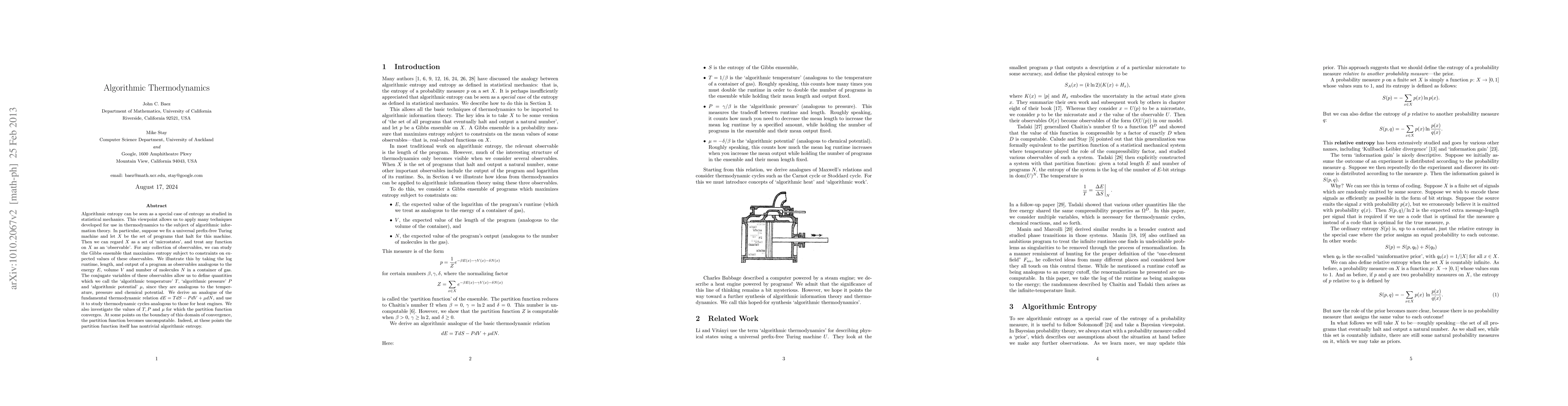 Researchers applied thermodynamic principles to algorithmic information theory, introducing concepts like algorithmic temperature, pressure, and potential, which enable the study of thermodynamic cycles and phase transitions in computational systems.