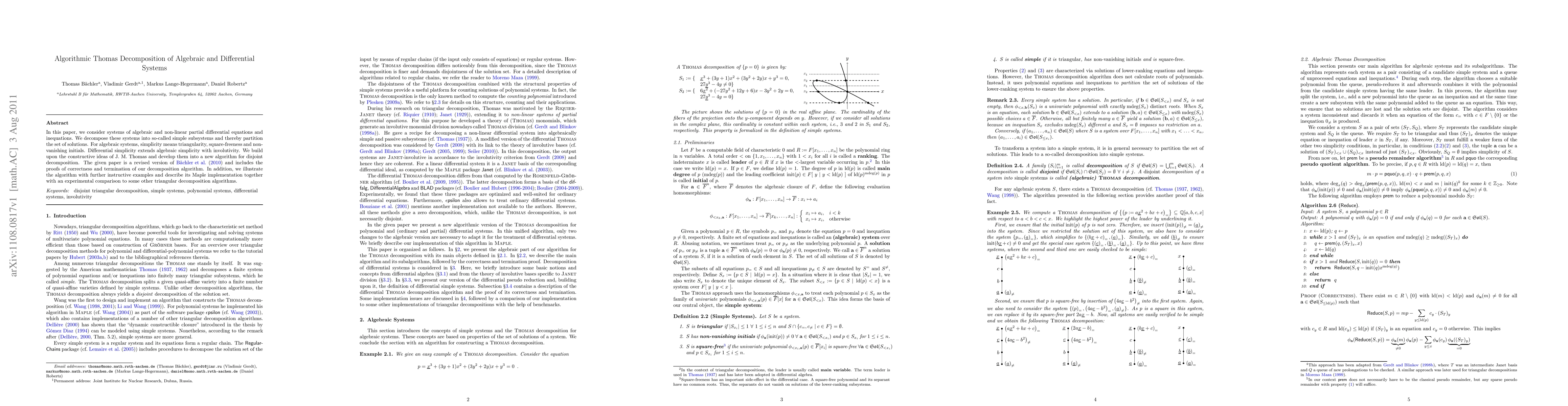 This paper develops an algorithmic approach to decompose complex algebraic and differential systems into simpler subsystems, ensuring solution partitioning. It builds on Thomas's ideas, proving the algorithm's correctness and termination, and includes a Maple implementation for practical application.