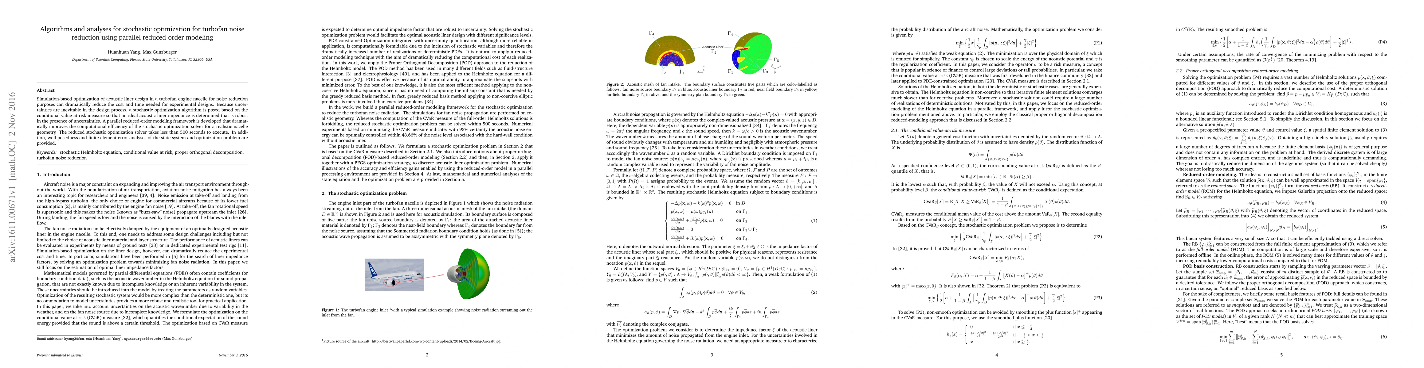 Researchers developed a stochastic optimization algorithm to reduce turbofan engine noise using parallel reduced-order modeling, achieving computational efficiency of under 500 seconds.