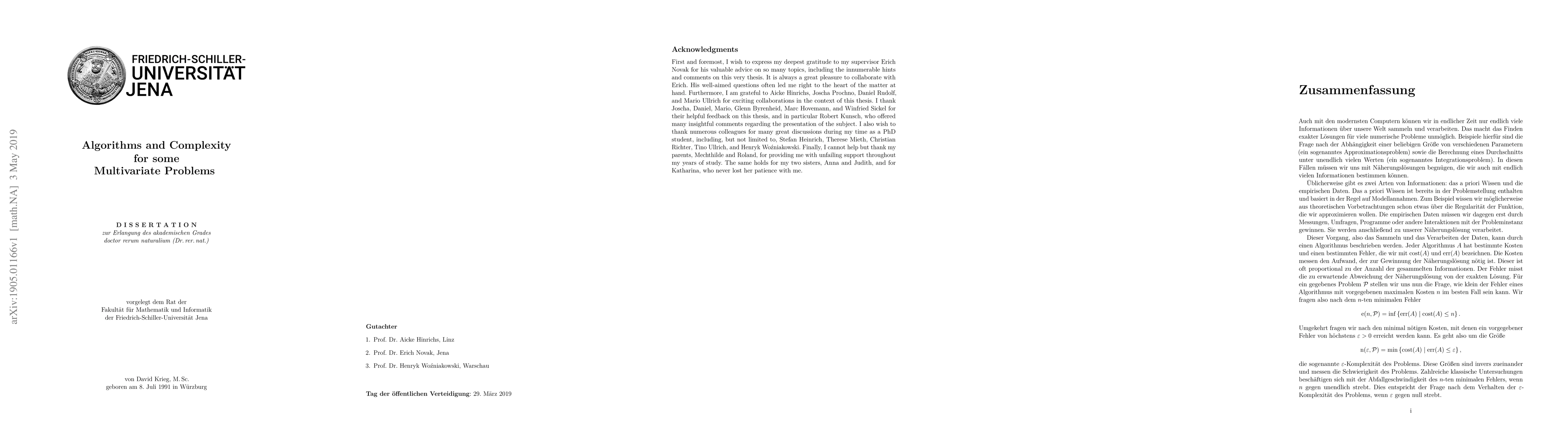 Researchers study multivariate problems like function approximation and numerical integration to determine the minimum amount of information needed to solve these problems with a specified error level. They also present optimal algorithms for some of these problems, providing new insights into the complexity of these tasks.