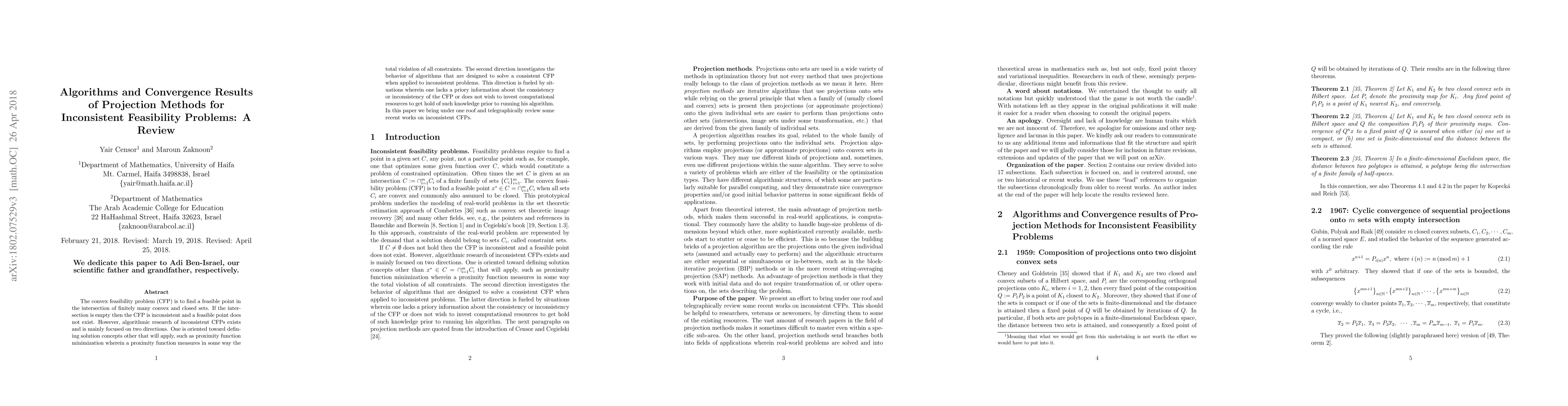 The convex feasibility problem (CFP) is to find a feasible point in the intersection of finitely many convex and closed sets. If the intersection is empty then the CFP is inconsistent and a feasible point does not exist. However, algorithmic research of inconsistent CFPs exists and is mainly focused on two directions. One is oriented toward defining other solution concepts that will apply, such as proximity function minimization wherein a proximity function measures in some way the total violation of all constraints. The second direction investigates the behavior of algorithms that are designed to solve a consistent CFP when applied to inconsistent problems. This direction is fueled by situations wherein one lacks a priori information about the consistency or inconsistency of the CFP or does not wish to invest computational resources to get hold of such knowledge prior to running his algorithm. In this paper we bring under one roof and telegraphically review some recent works on inconsistent CFPs.