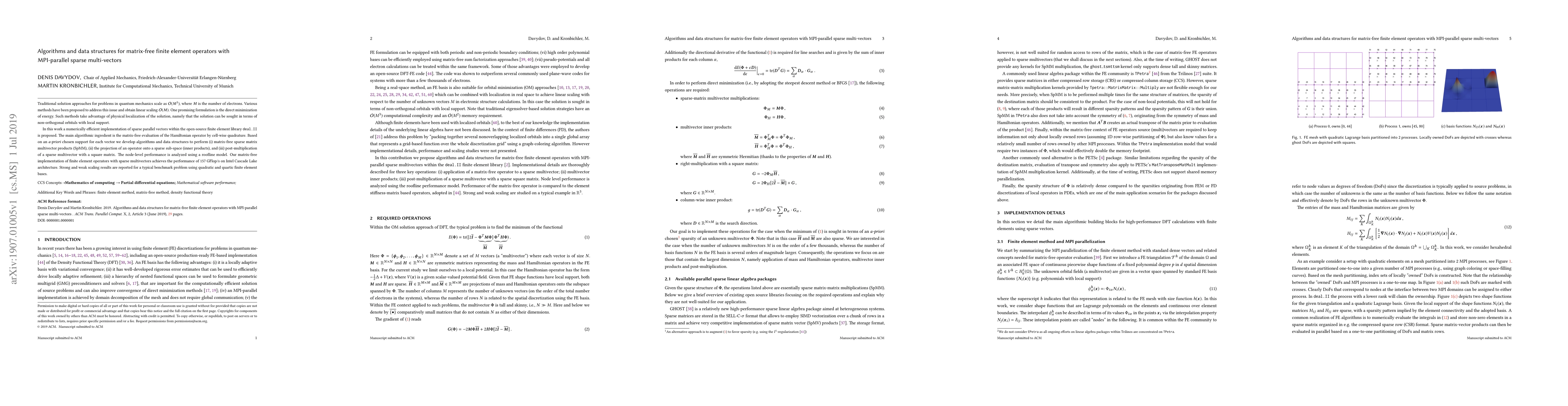 This paper proposes an efficient implementation of matrix-free finite element operators using sparse parallel vectors in the deal.II library, focusing on linear scaling for quantum mechanics problems. It introduces algorithms for matrix-free sparse matrix multivector products and achieves 157 GFlop/s on Intel Cascade Lake architecture, demonstrating strong and weak scaling for benchmark problems.