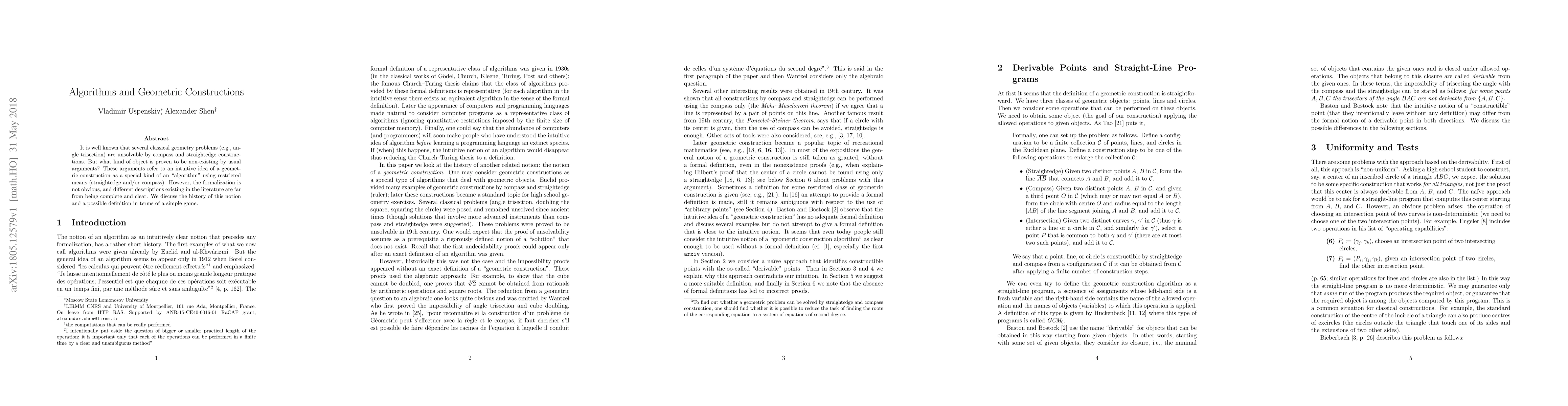 A research paper explores how classical geometry problems can be formalized as algorithms using restricted means like straightedge and compass, proposing a definition based on a simple game to clarify the notion of geometric construction.