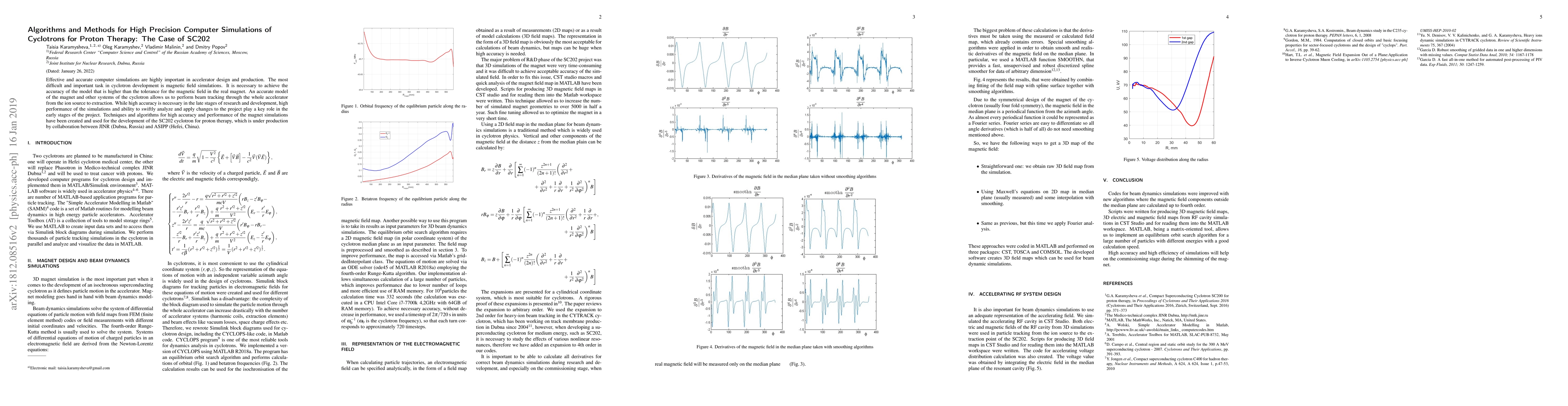Effective and accurate computer simulations are highly important in accelerator design and production. The most difficult and important task in cyclotron development is magnetic field simulations. It is necessary to achieve the accuracy of the model that is higher than the tolerance for the magnetic field in the real magnet. An accurate model of the magnet and other systems of the cyclotron allows us to perform beam tracking through the whole accelerator from the ion source to extraction. While high accuracy is necessary in the late stages of research and development, high performance of the simulations and ability to swiftly analyze and apply changes to the project play a key role in the early stages of the project. Techniques and algorithms for high accuracy and performance of the magnet simulations have been created and used for the development of the SC202 cyclotron for proton therapy, which is under production by collaboration between JINR (Dubna, Russia) and ASIPP (Hefei, China).