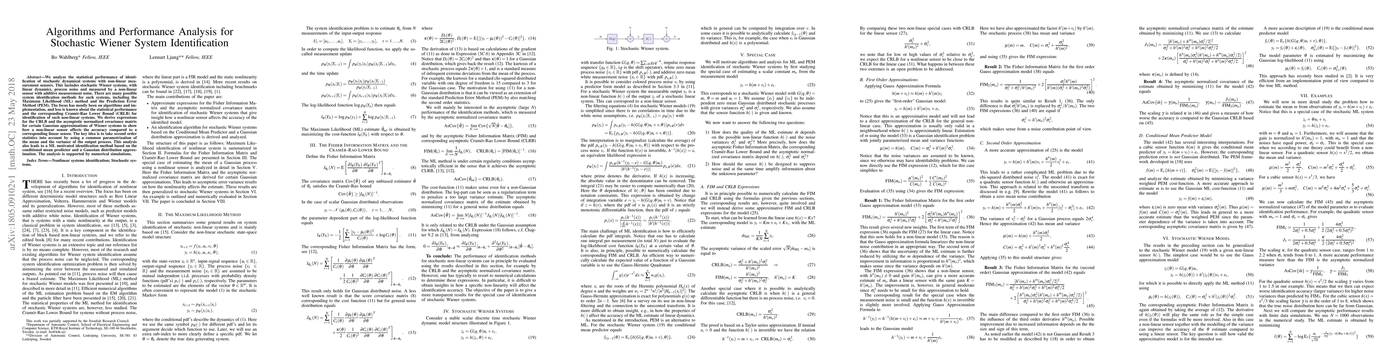 This paper investigates the statistical performance of identifying stochastic Wiener systems with non-linear measurement sensors, deriving expressions for the Cramér-Rao Lower Bound and asymptotic normalized covariance matrix. It proposes a Maximum Likelihood identification method based on conditional mean predictors and Gaussian approximations, supported by numerical simulations.