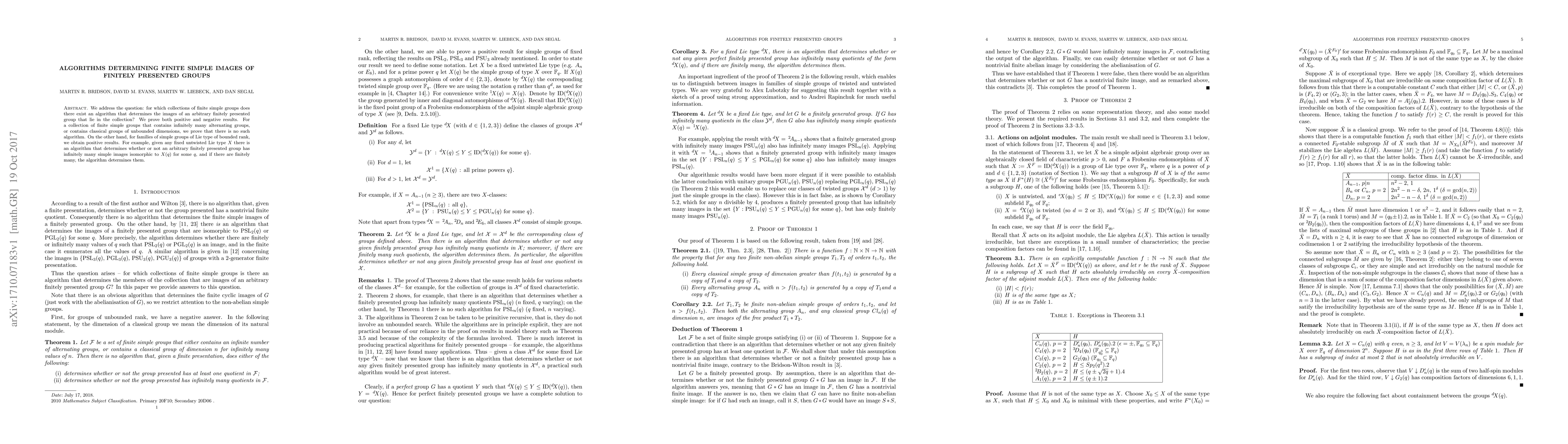 We address the question: for which collections of finite simple groups does there exist an algorithm that determines the images of an arbitrary finitely presented group that lie in the collection? We prove both positive and negative results. For a collection of finite simple groups that contains infinitely many alternating groups, or contains classical groups of unbounded dimensions, we prove that there is no such algorithm. On the other hand, for families of simple groups of Lie type of bounded rank, we obtain positive results. For example, given any fixed untwisted Lie type $X$ there is an algorithm that determines whether or not an arbitrary finitely presented group has infinitely many simple images isomorphic to $X(q)$ for some $q$, and if there are finitely many, the algorithm determines them.
