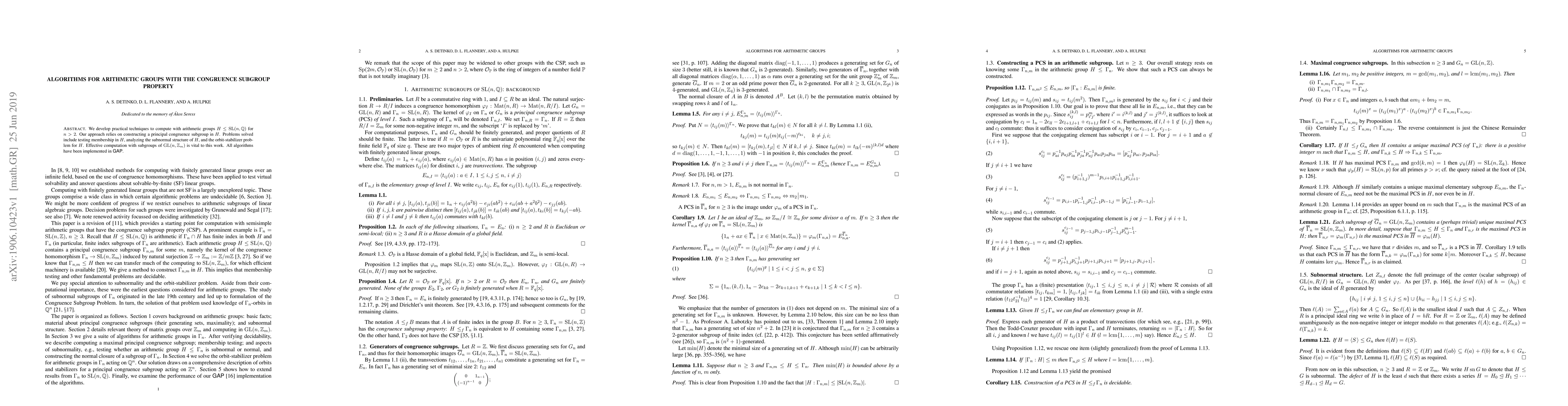 We develop practical techniques to compute with arithmetic groups $H\leq \mathrm{SL}(n,\mathbb{Q})$ for $n>2$. Our approach relies on constructing a principal congruence subgroup in $H$. Problems solved include testing membership in $H$, analyzing the subnormal structure of $H$, and the orbit-stabilizer problem for $H$. Effective computation with subgroups of $\mathrm{GL}(n,\mathbb{Z}_m)$ is vital to this work. All algorithms have been implemented in GAP.