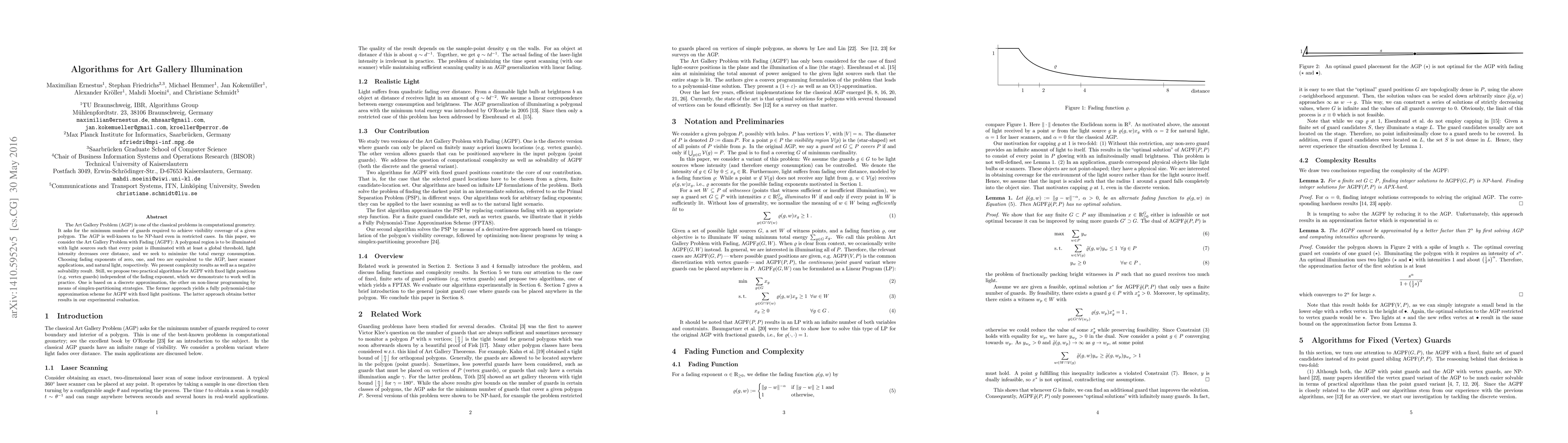 The Art Gallery Problem (AGP) is one of the classical problems in computational geometry. It asks for the minimum number of guards required to achieve visibility coverage of a given polygon. The AGP is well-known to be NP-hard even in restricted cases. In this paper, we consider the Art Gallery Problem with Fading (AGPF): A polygonal region is to be illuminated with light sources such that every point is illuminated with at least a global threshold, light intensity decreases over distance, and we seek to minimize the total energy consumption. Choosing fading exponents of zero, one, and two are equivalent to the AGP, laser scanner applications, and natural light, respectively. We present complexity results as well as a negative solvability result. Still, we propose two practical algorithms for AGPF with fixed light positions (e.g. vertex guards) independent of the fading exponent, which we demonstrate to work well in practice. One is based on a discrete approximation, the other on non-linear programming by means of simplex-partitioning strategies. The former approach yields a fully polynomial-time approximation scheme for AGPF with fixed light positions. The latter approach obtains better results in our experimental evaluation.