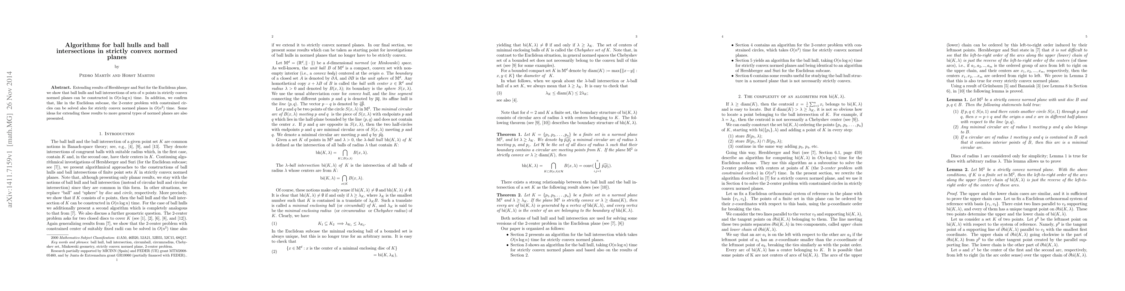 This paper extends Hershberger and Suri's results to strictly convex normed planes, demonstrating $O(n \log n)$ time algorithms for constructing ball hulls and ball intersections of $n$ points. It also solves the $2$-center problem with constrained circles in $O(n^2)$ time, and suggests potential extensions to more general normed planes.