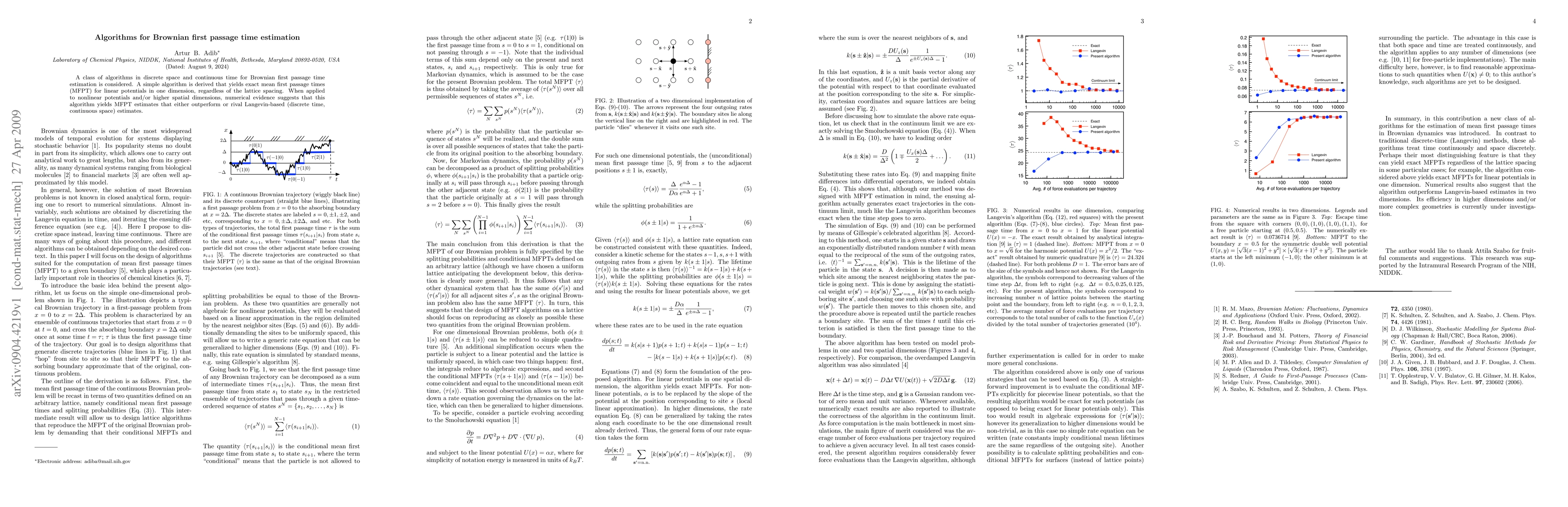A new algorithm accurately estimates Brownian first passage times for linear potentials in 1D, outperforming existing methods in higher dimensions.