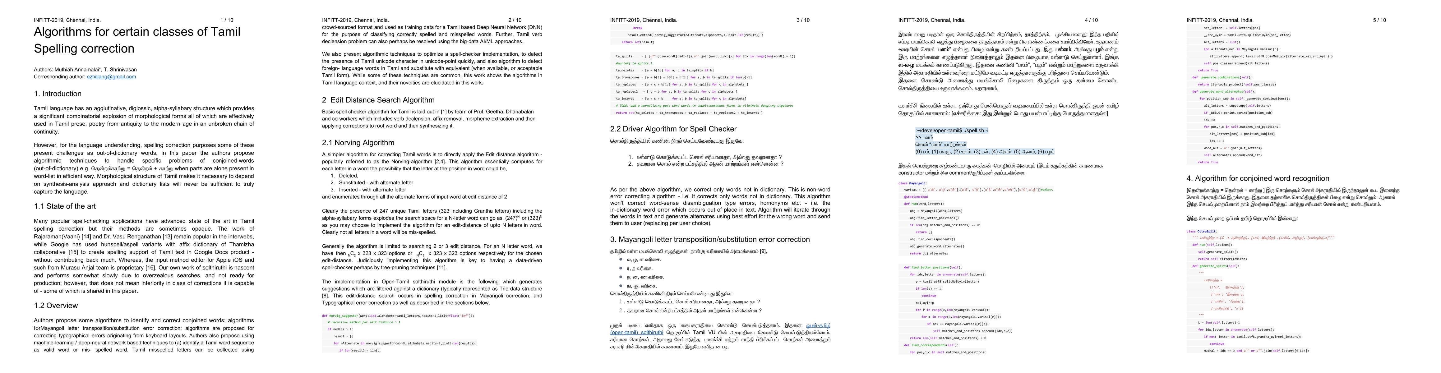 Tamil language has an agglutinative, diglossic, alpha-syllabary structure which provides a significant combinatorial explosion of morphological forms all of which are effectively used in Tamil prose, poetry from antiquity to the modern age in an unbroken chain of continuity. However, for the language understanding, spelling correction purposes some of these present challenges as out-of-dictionary words. In this paper the authors propose algorithmic techniques to handle specific problems of conjoined-words (out-of-dictionary) (transliteration)[thendRalkattRu] = [thendRal]+[kattRu] when parts are alone present in word-list in efficient way. Morphological structure of Tamil makes it necessary to depend on synthesis-analysis approach and dictionary lists will never be sufficient to truly capture the language. In this paper we have attempted to make a summary of various known algorithms for specific classes of Tamil spelling errors. We believe this collection of suggestions to improve future spelling checkers. We also note do not cover many important techniques like affix removal and other such techniques of key importance in rule-based spell checkers.