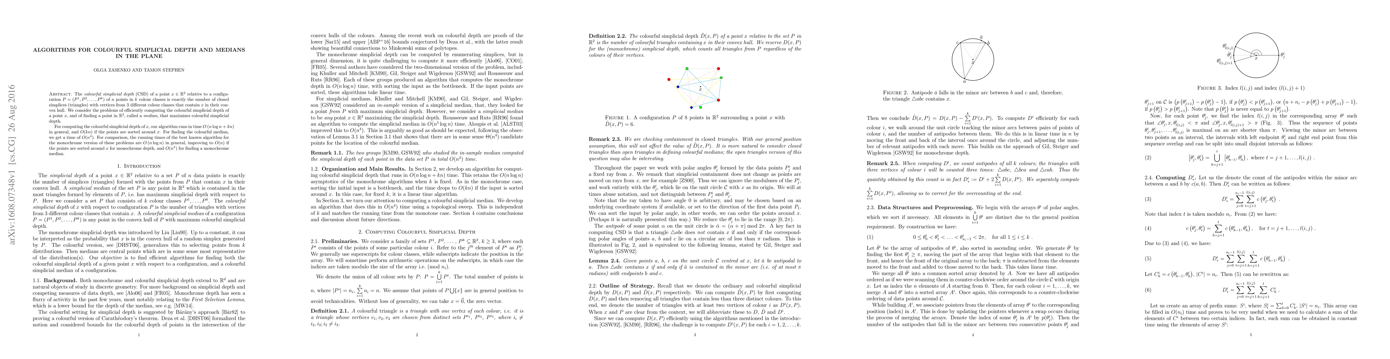 This paper presents algorithms for computing the colourful simplicial depth of a point in a plane with points divided into k colour classes, and for finding a median point that maximizes this depth. The algorithm for depth computation runs in O(n log(n) + k n) time, improving to O(kn) when points are sorted around the point of interest. The median finding algorithm has a time complexity of O(n^4).