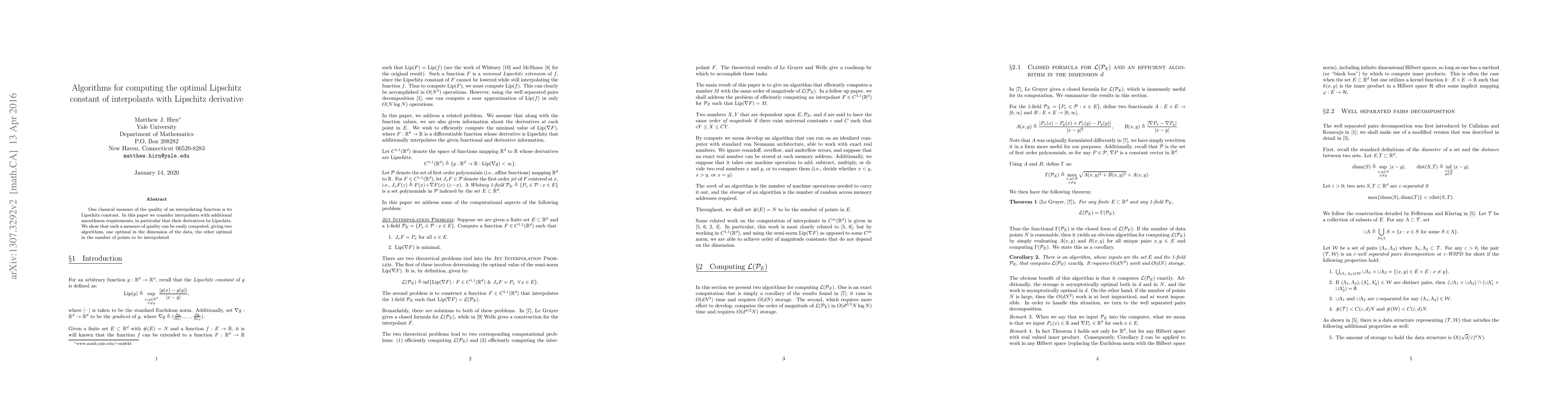 Researchers developed algorithms to efficiently calculate a measure of quality for interpolating functions that also meet additional smoothness requirements, such as having Lipsitz derivatives.