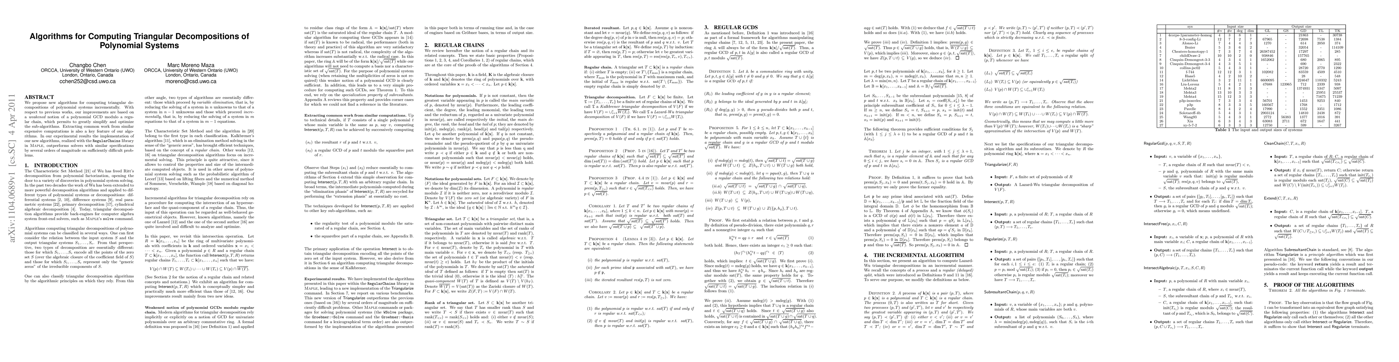This paper introduces new algorithms for incrementally computing triangular decompositions of polynomial systems, leveraging a simplified notion of polynomial GCD modulo a regular chain and optimizing sub-algorithms. Experimental results show significant performance improvements over existing solvers in challenging problems.