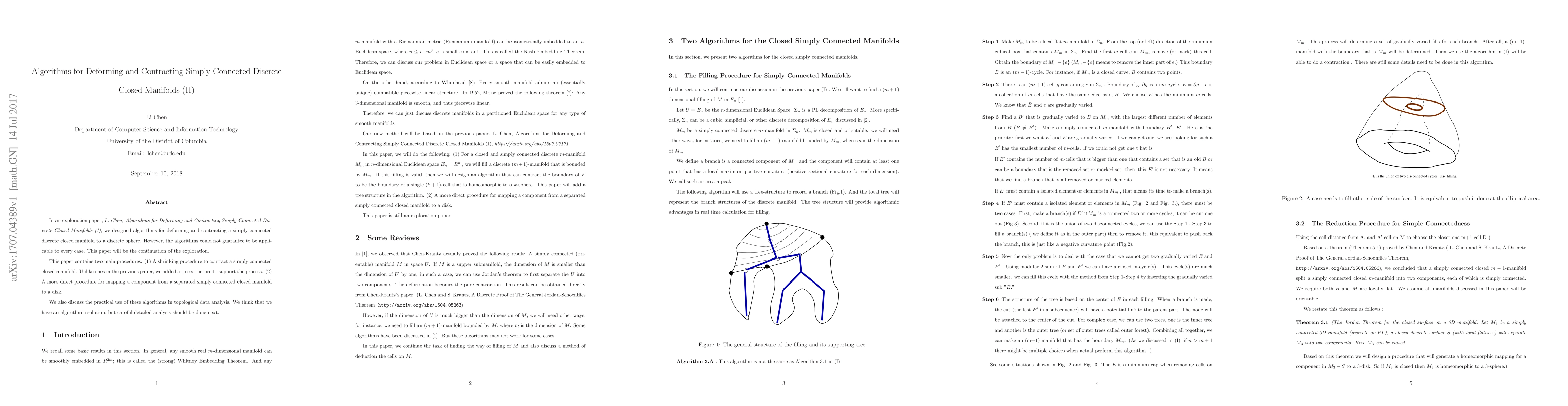 This paper continues the development of algorithms for deforming and contracting simply connected discrete closed manifolds, introducing a tree structure in the shrinking procedure and a more direct mapping method for components. It also explores practical applications in topological data analysis, though further detailed analysis is needed.