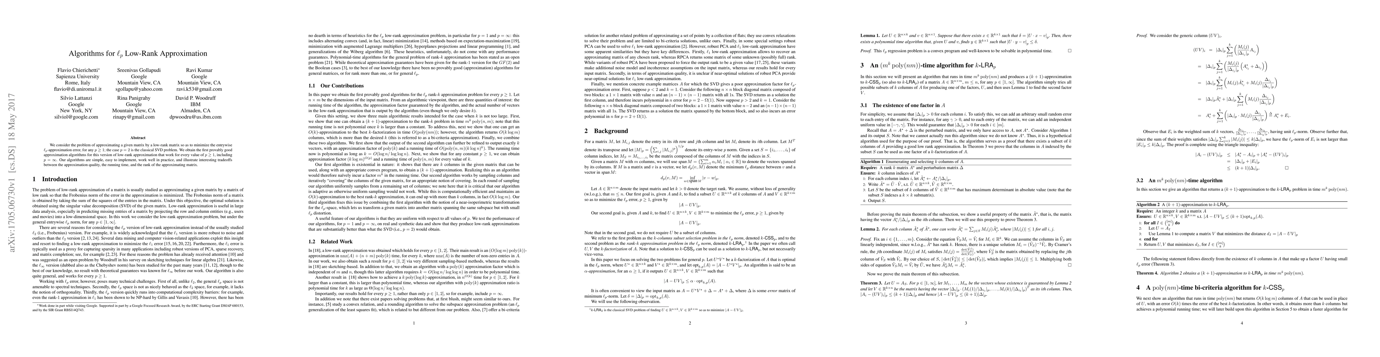 This paper presents the first provably good algorithms for approximating matrices with low-rank structures to minimize the entrywise $\ell_p$-approximation error for any $p \geq 1$, including $p = \infty$. The proposed algorithms are simple, practical, and demonstrate tradeoffs between approximation quality, running time, and matrix rank.