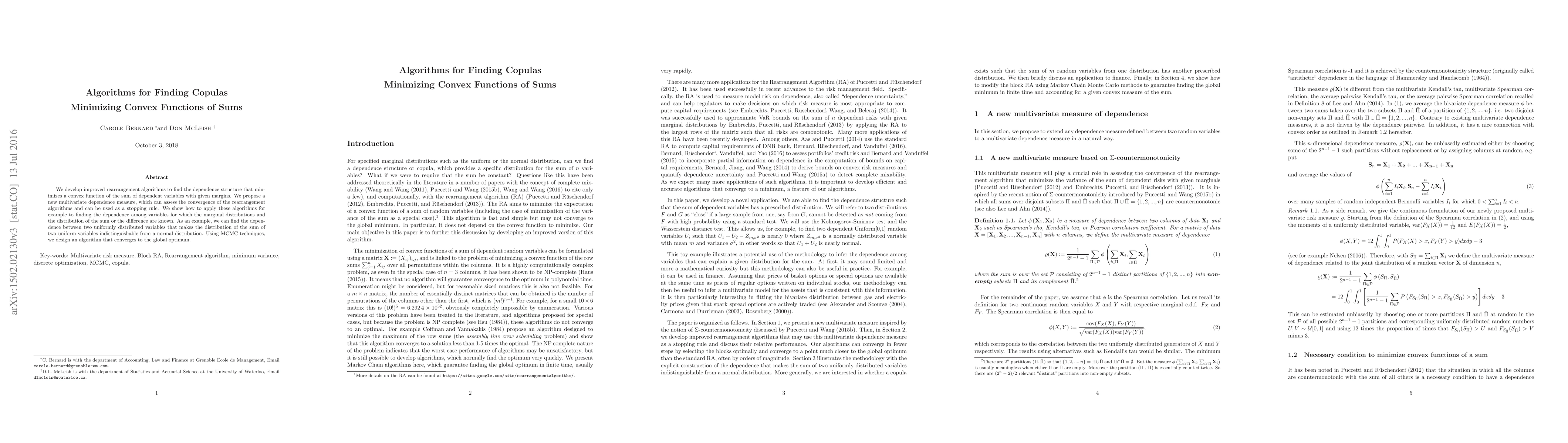 The paper develops new algorithms to find the dependence structure that minimizes a convex function of sums, with applications in finance, engineering, and statistics, offering improved convergence rates using MCMC techniques.
