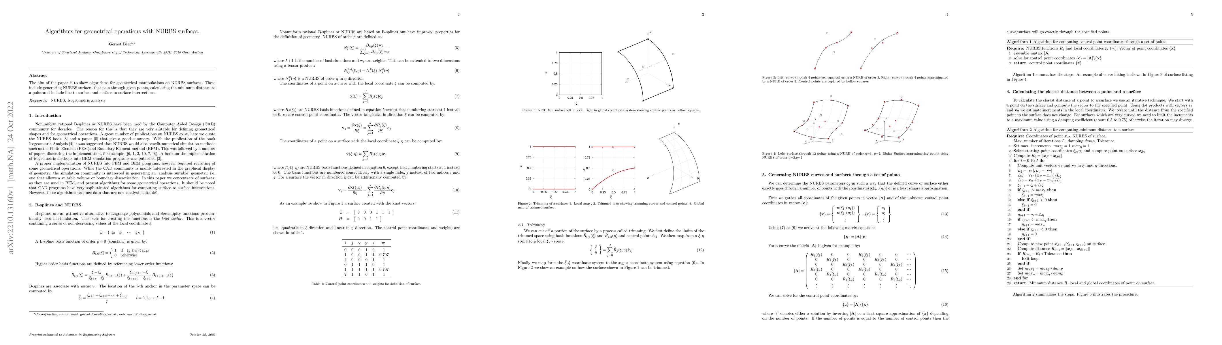This paper presents algorithms for manipulating NURBS surfaces, including generating surfaces through specified points, calculating minimum distances to points, and determining intersections between lines and surfaces, as well as between surfaces.