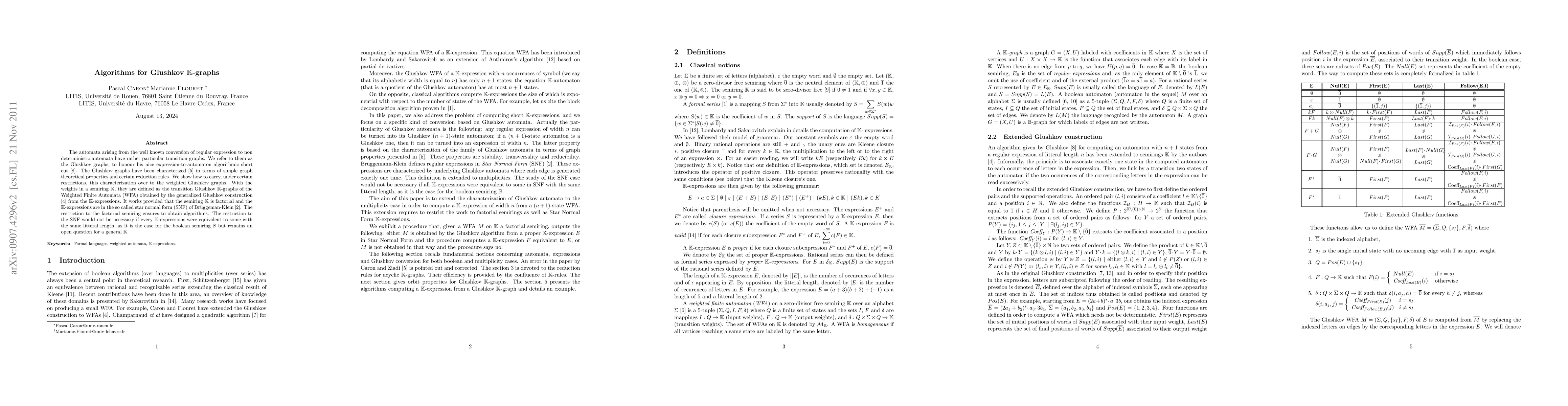 The automata arising from the well known conversion of regular expression to non deterministic automata have rather particular transition graphs. We refer to them as the Glushkov graphs, to honour his nice expression-to-automaton algorithmic short cut (On a synthesis algorithm for abstract automata, Ukr. Matem. Zhurnal, 12(2):147-156, 1960, In Russian). The Glushkov graphs have been characterized (P. Caron and D. Ziadi, Characterization of Glushkov automata. Theoret. Comput. Sci., 233(1-2):75-90, 2000) in terms of simple graph theoretical properties and certain reduction rules. We show how to carry, under certain restrictions, this characterization over to the weighted Glushkov graphs. With the weights in a semiring K, they are defined as the transition Glushkov K-graphs of the Weighted Finite Automata (WFA) obtained by the generalized Glushkov construction (P. Caron and M. Flouret, Glushkov construction for series: the non commutative case, Internat. J. Comput. Math., 80(4):457-472, 2003) from the K-expressions. It works provided that the semiring K is factorial and the K-expressions are in the so called star normal form (SNF) of Bruggeman-Klein (Regular expressions into finite automata, Theoret. Comput. Sci., 120(2):197-213, 1993) The restriction to the factorial semiring ensures to obtain algorithms. The restriction to the SNF would not be necessary if every K-expressions were equivalent to some with the same litteral length, as it is the case for the boolean semiring B but remains an open question for a general K.