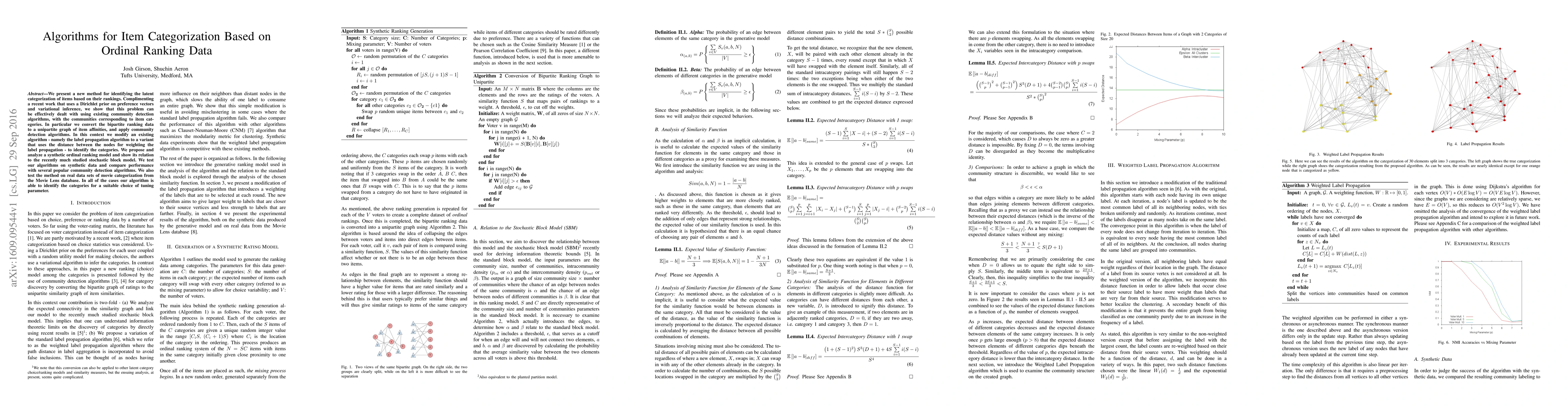 This research introduces a novel method for categorizing items using ordinal ranking data, converting bipartite data into a unipartite graph of item affinities. A modified label propagation algorithm is applied, achieving effective category identification. The method is tested on synthetic and real data sets, demonstrating its efficacy in identifying categories with a suitable tuning parameter.
