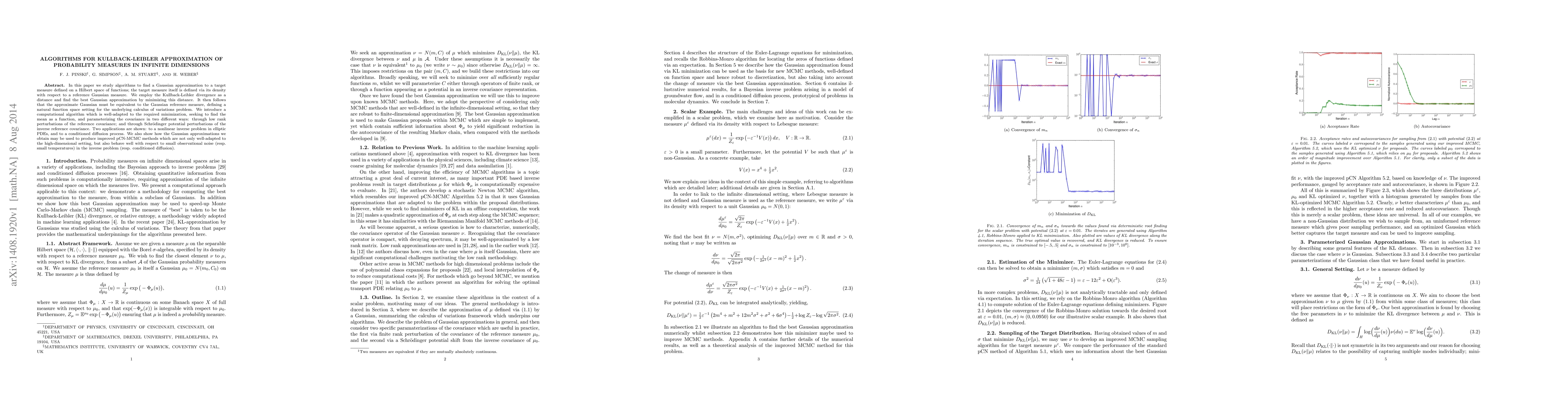 Researchers developed algorithms to approximate probability measures in infinite dimensions using Gaussian distributions, minimizing Kullback-Leibler divergence and finding applications in nonlinear inverse problems and conditioned diffusion processes.