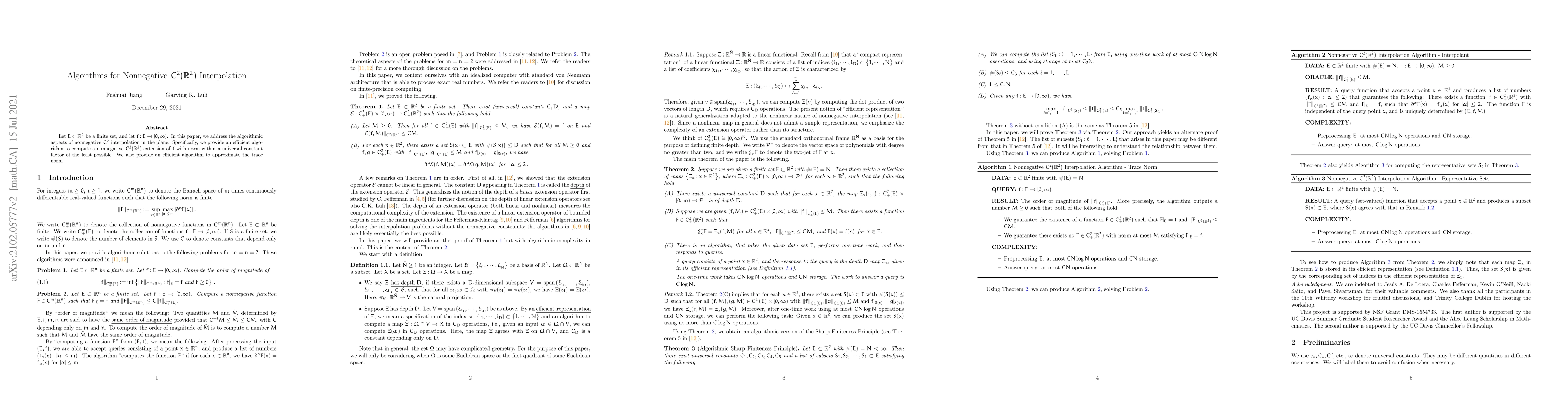 Let $ E \subset \mathbb{R}^2 $ be a finite set, and let $ f : E \to [0,\infty) $. In this paper, we address the algorithmic aspects of nonnegative $C^2$ interpolation in the plane. Specifically, we provide an efficient algorithm to compute a nonnegative $C^2(\mathbb{R}^2)$ extension of $ f $ with norm within a universal constant factor of the least possible. We also provide an efficient algorithm to approximate the trace norm.