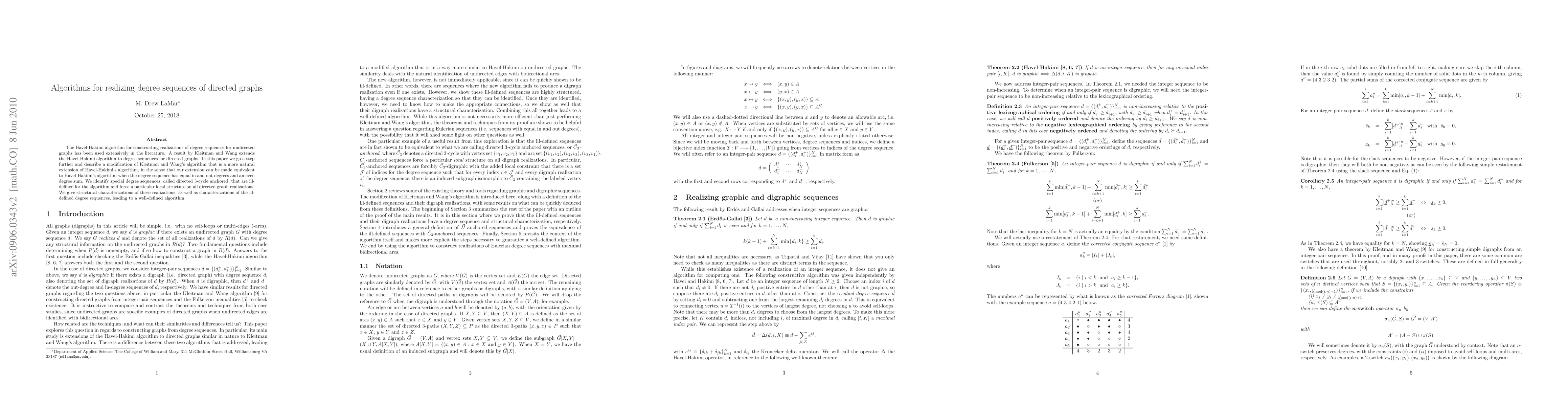 This paper modifies Kleitman and Wang's algorithm for constructing directed graphs from their degree sequences, making it more akin to the Havel-Hakimi algorithm for undirected graphs. It also identifies and characterizes "directed 3-cycle anchored" sequences that cause structural issues, providing a well-defined algorithm for these cases.
