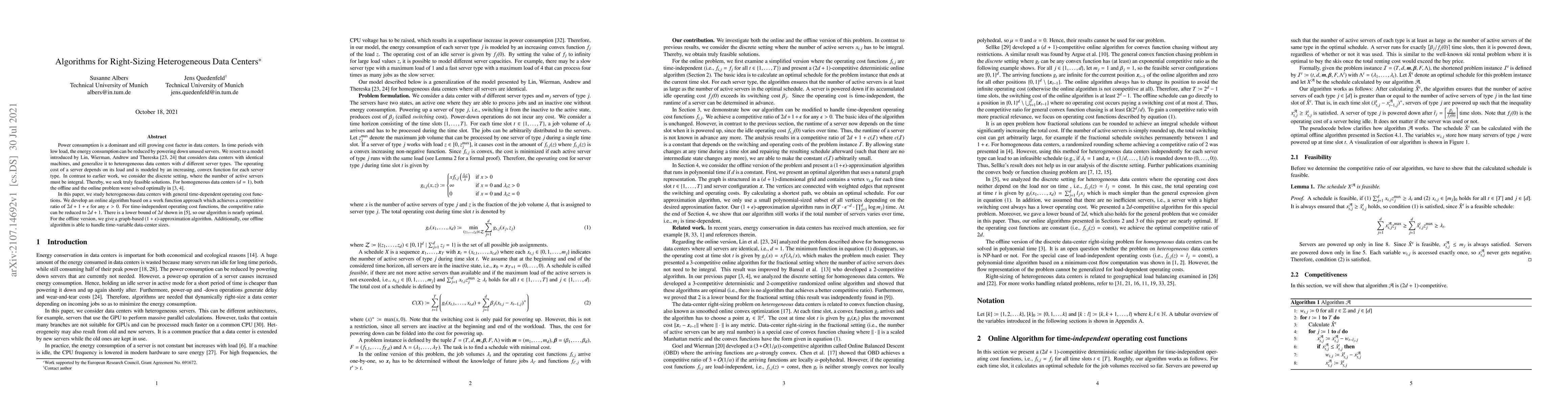 This paper develops algorithms for optimizing the power consumption in heterogeneous data centers by powering down unused servers during low load periods. It presents an online algorithm achieving a competitive ratio of $2d + 1 + \epsilon$ and an offline $(1+\epsilon)$-approximation algorithm, both nearly optimal compared to existing lower bounds.