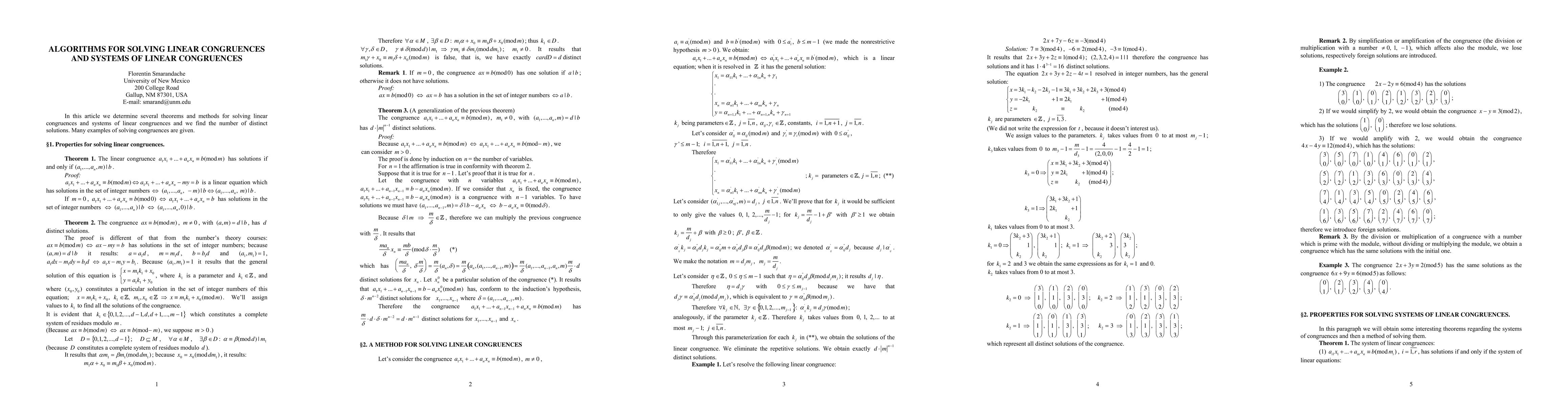 Researchers develop methods for solving linear congruences and systems of linear congruences, finding distinct solutions and providing examples.