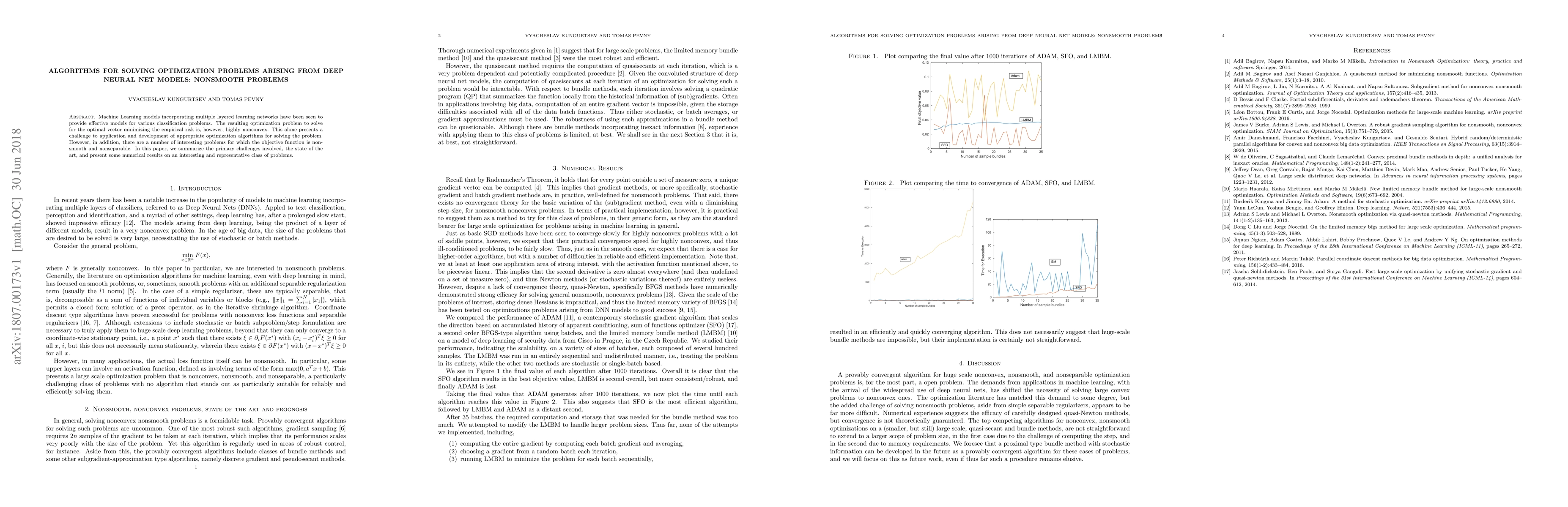 This paper discusses the challenges of optimizing nonconvex, nonsmooth objective functions in deep neural networks, reviews current state-of-the-art algorithms, and presents numerical results for a representative class of optimization problems.
