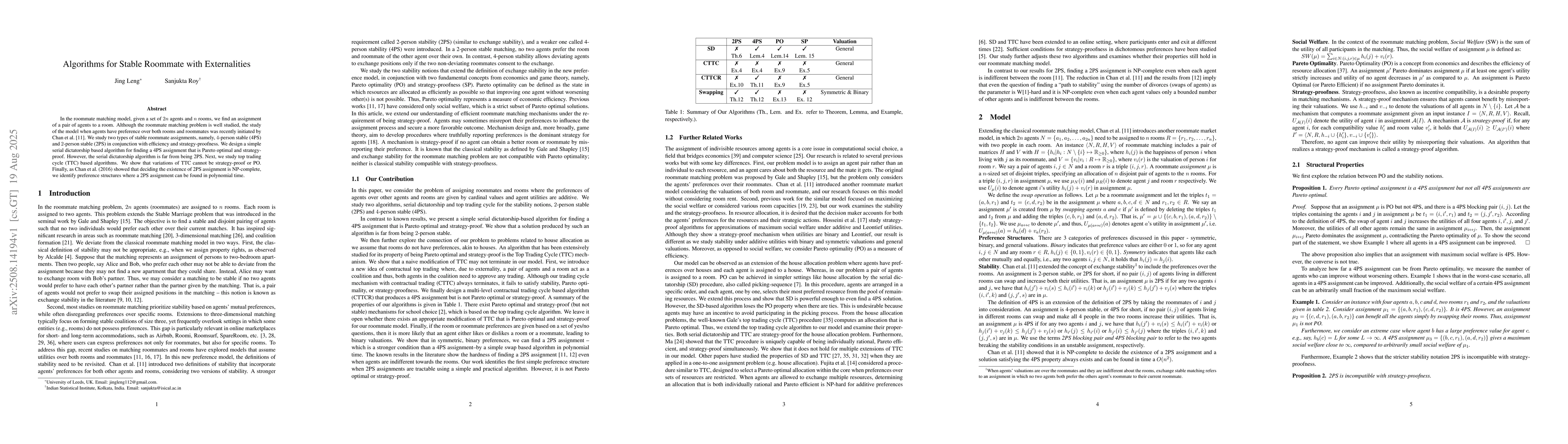 The research distinguishes itself by systematically examining the interplay between stability, efficiency, and strategic behavior in roommate matching, proposing new algorithms and identifying preference structures that allow for polynomial-time 2PS assignment solutions.