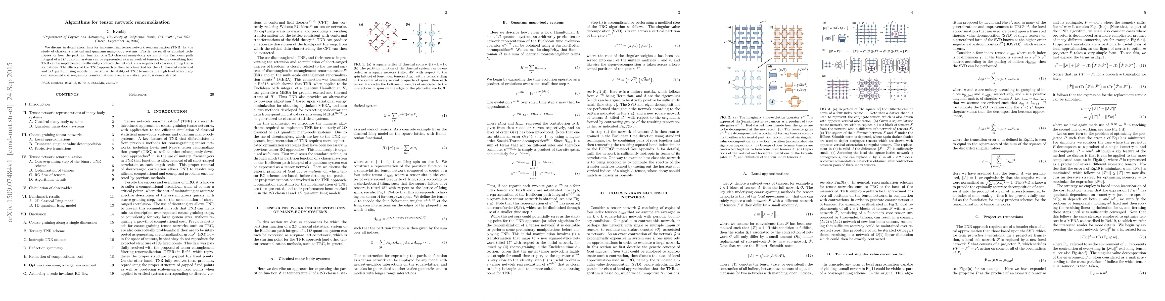 Researchers developed algorithms for tensor network renormalization to efficiently analyze complex many-body systems, demonstrating its ability to maintain accuracy even at critical points.
