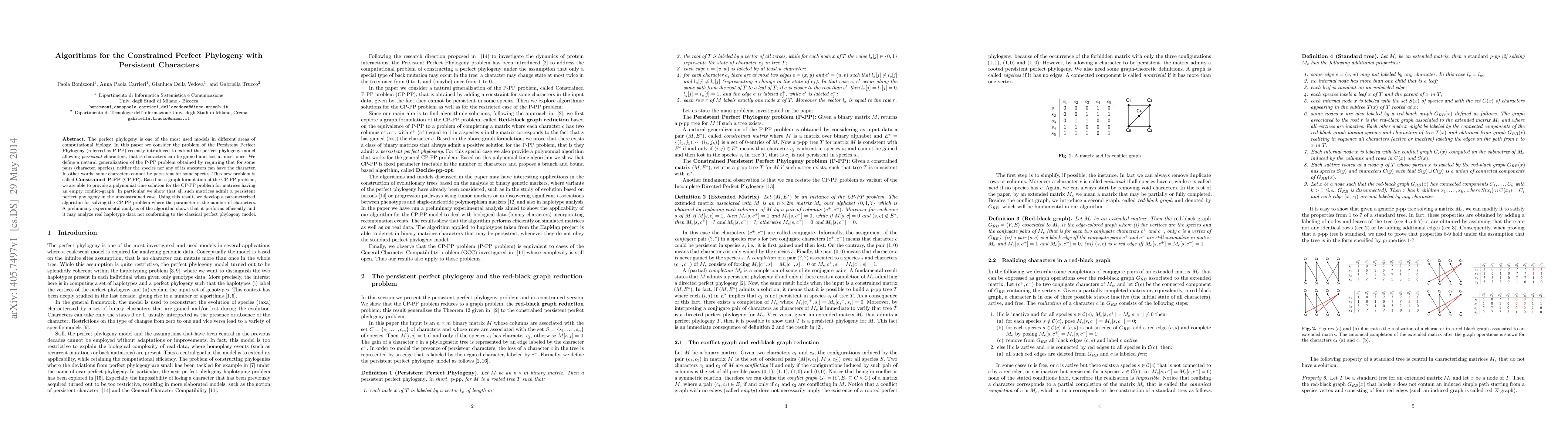 This paper introduces the Constrained Persistent Perfect Phylogeny (CP-PP) problem, extending the perfect phylogeny model to allow characters to be gained and lost at most once. It presents a polynomial time solution for CP-PP when conflict-graphs are empty and develops a parameterized algorithm for general cases, showing efficient performance in preliminary experiments.