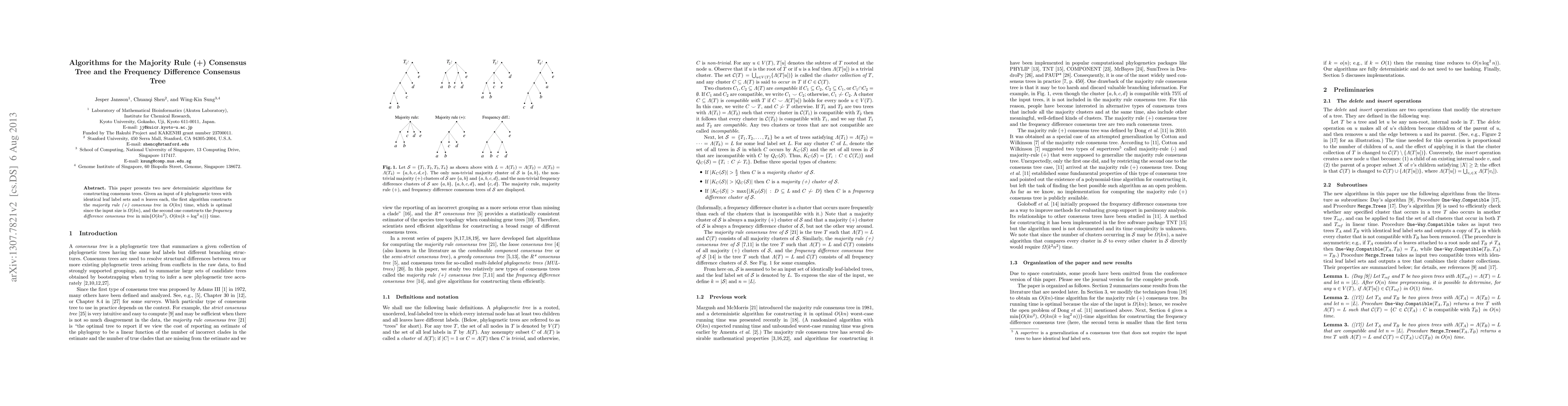 This paper introduces two efficient algorithms for building consensus trees: one for the majority rule (+) consensus tree in O(kn) time, and another for the frequency difference consensus tree in either O(kn^2) or O(kn(k+log^2 n)) time, both of which are optimal or near-optimal given the input size.
