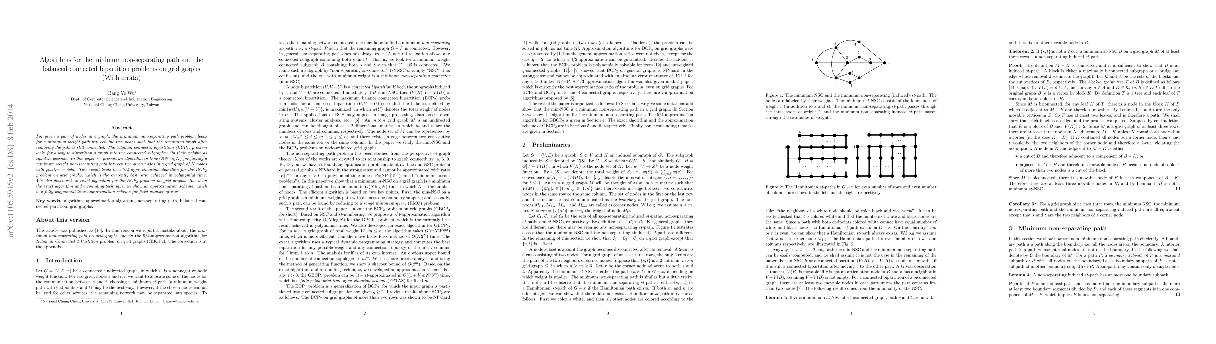 Researchers developed algorithms to solve two graph problems: finding a minimum weight non-separating path on grid graphs and balancing connected bipartition. Their work leads to efficient solutions for these problems in polynomial time.