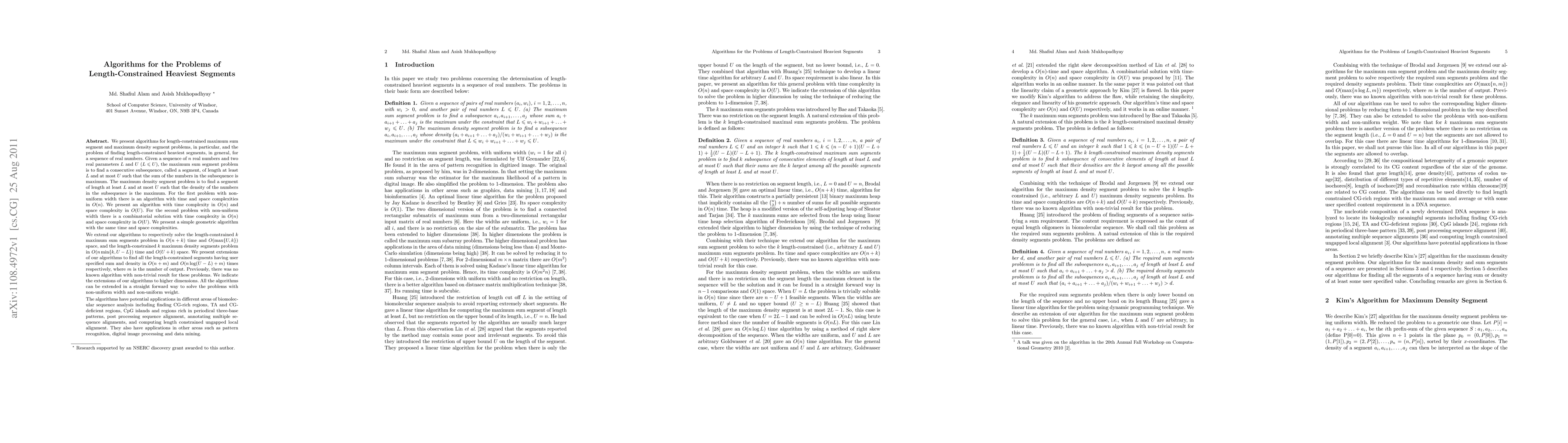Researchers have developed efficient algorithms to solve length-constrained maximum sum and density segment problems for sequences of real numbers, with applications in finance and data analysis.