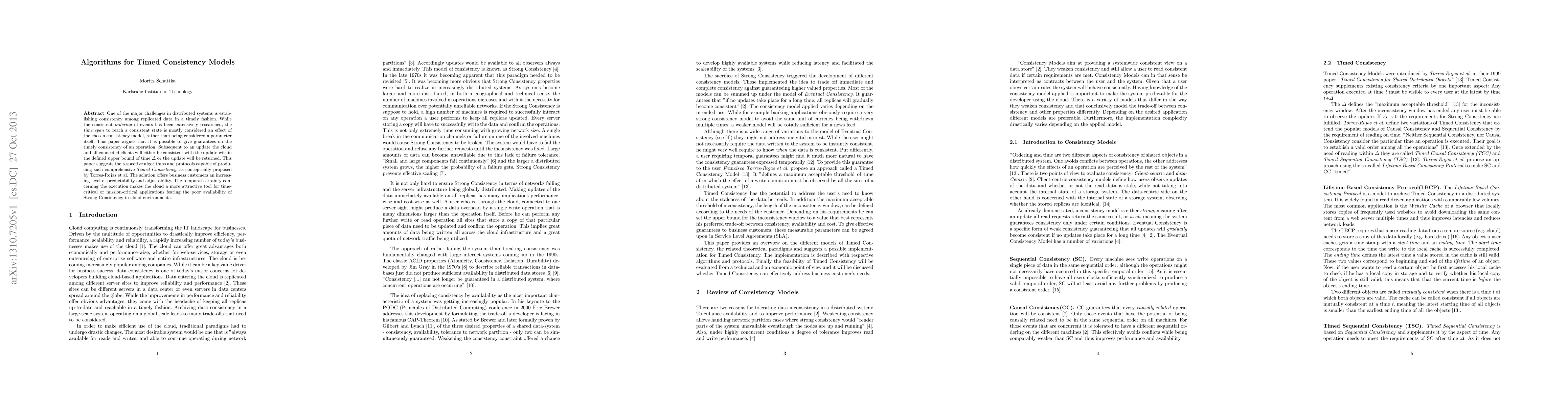 This paper proposes algorithms and protocols for achieving Timed Consistency in distributed systems, ensuring that updates are consistent within a defined time bound. This approach enhances predictability and attractiveness of cloud services for time-critical applications.
