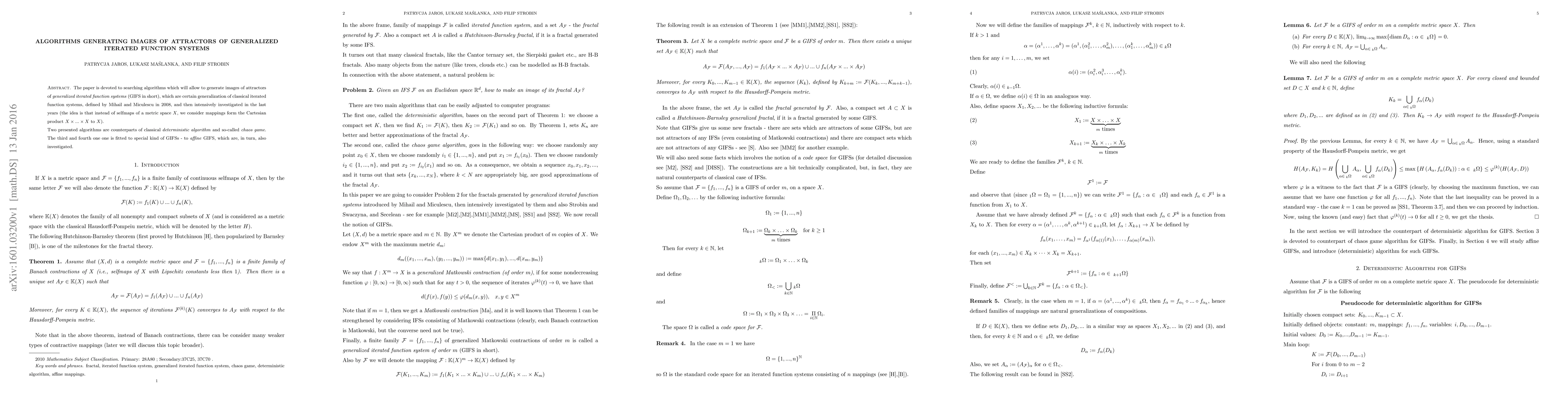 This paper explores algorithms for generating images of attractors of generalized iterated function systems (GIFS), a generalization of classical iterated function systems. It introduces two algorithms analogous to the deterministic algorithm and chaos game, and two additional algorithms tailored for affine GIFS.