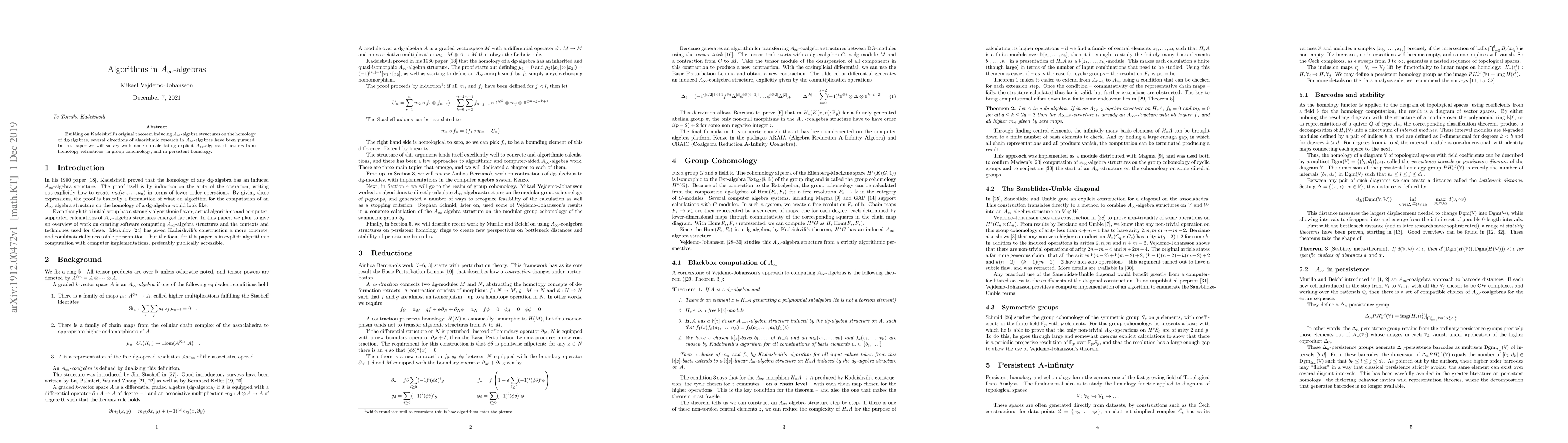 This paper surveys algorithms for deriving $A_\infty$-algebra structures from homotopy retractions, group cohomology, and persistent homology, expanding on Kadeishvili's foundational theorem for $A_\infty$-algebras.