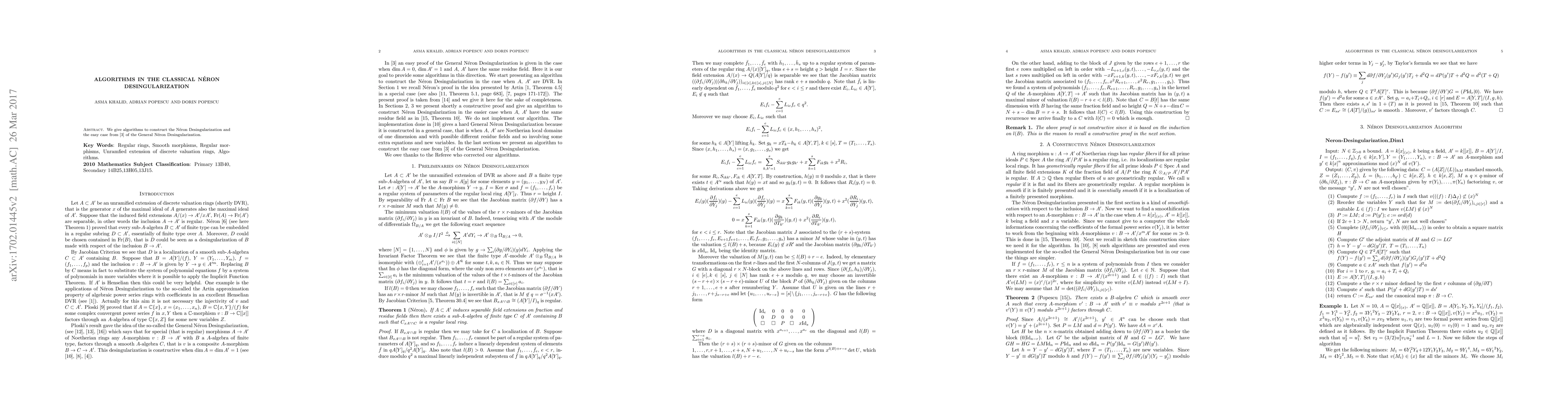 Summary: This paper presents algorithms for constructing the classical N\'eron Desingularization and addresses the simpler case of the General N\'eron Desingularization as outlined in a referenced work. The focus is on providing a systematic approach to the desingularization process.
