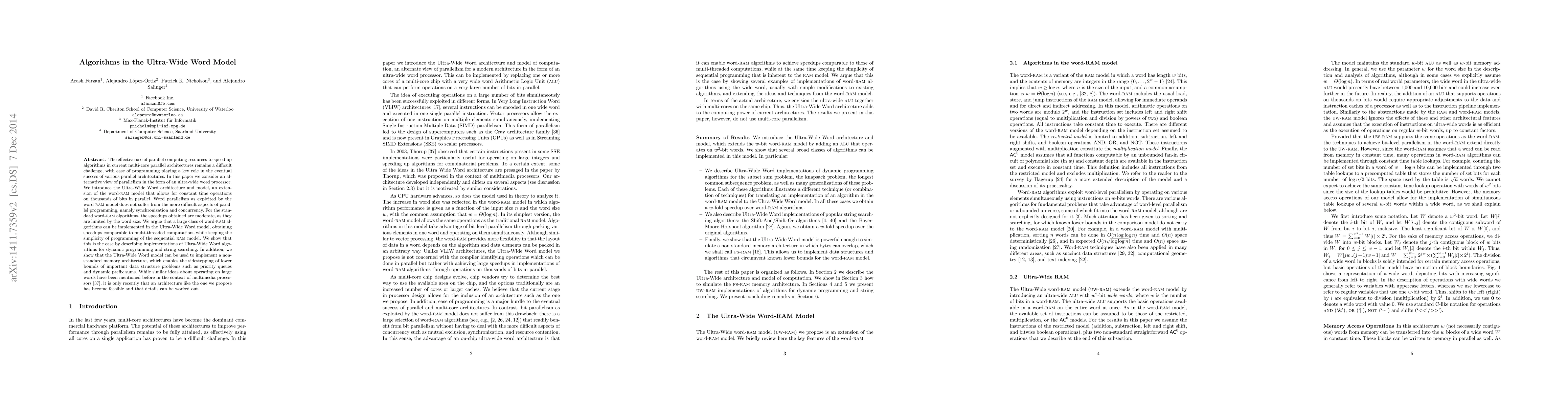 This paper introduces the Ultra-Wide Word architecture, which allows for constant time operations on thousands of bits in parallel, aiming to simplify parallel programming while achieving speedups comparable to multi-threaded computations. It demonstrates the model's effectiveness through implementations for dynamic programming and string searching, and shows it can bypass traditional lower bounds for data structures like priority queues.