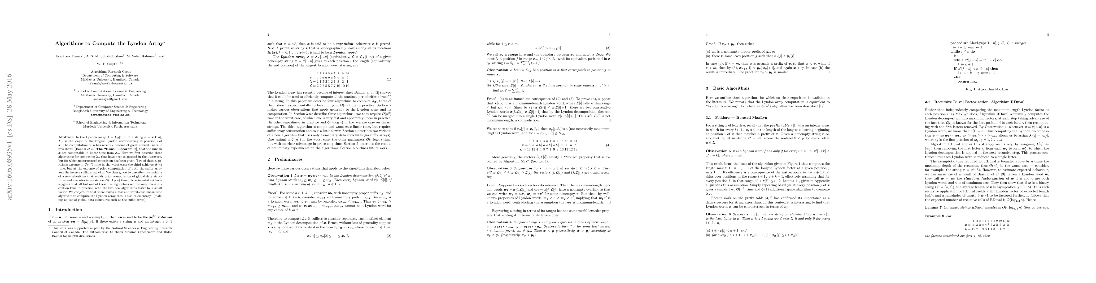 We first describe three algorithms for computing the Lyndon array that have been suggested in the literature, but for which no structured exposition has been given. Two of these algorithms execute in quadratic time in the worst case, the third achieves linear time, but at the expense of prior computation of both the suffix array and the inverse suffix array of x. We then go on to describe two variants of a new algorithm that avoids prior computation of global data structures and executes in worst-case n log n time. Experimental evidence suggests that all but one of these five algorithms require only linear execution time in practice, with the two new algorithms faster by a small factor. We conjecture that there exists a fast and worst-case linear-time algorithm to compute the Lyndon array that is also elementary (making no use of global data structures such as the suffix array).