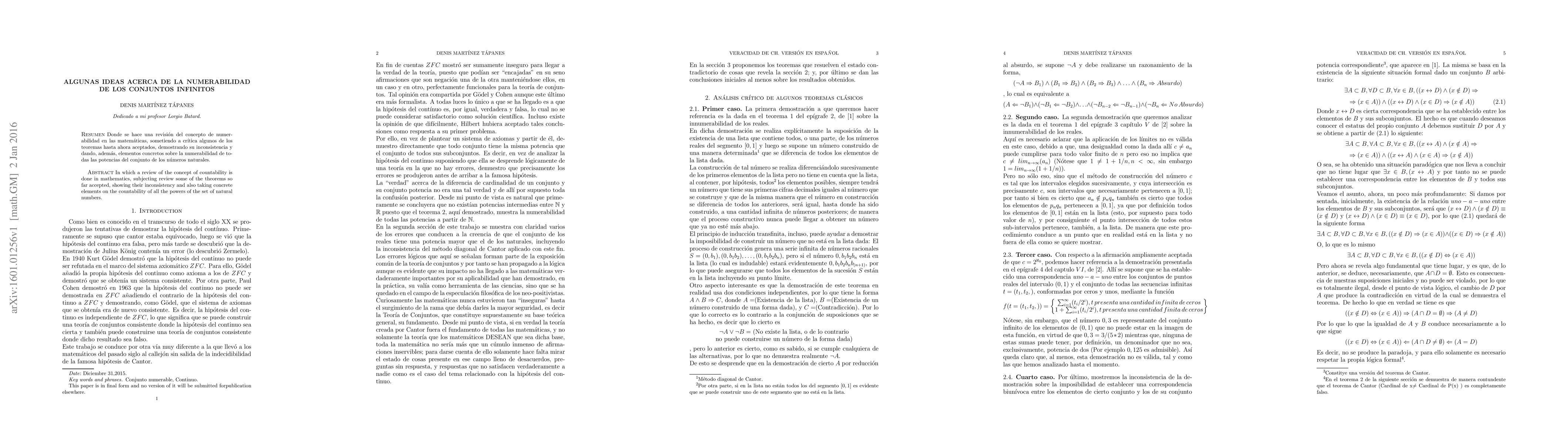 This paper reviews the concept of countability in mathematics, examining inconsistencies in accepted theorems and exploring the countability of powers of natural numbers. It aims to provide new ideas on the numerability of infinite sets.