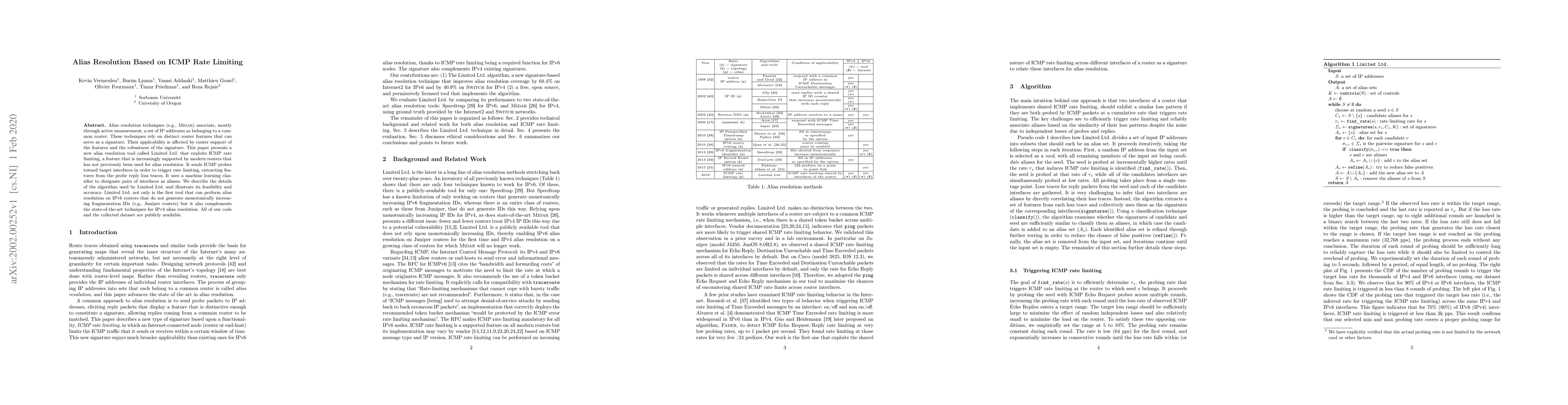 Limited Ltd. introduces a novel alias resolution technique leveraging ICMP rate limiting to identify IP address pairs belonging to the same router. It employs machine learning to classify interfaces based on ICMP probe reply loss patterns, enhancing IPv4 resolution and enabling IPv6 resolution for routers lacking traditional features.