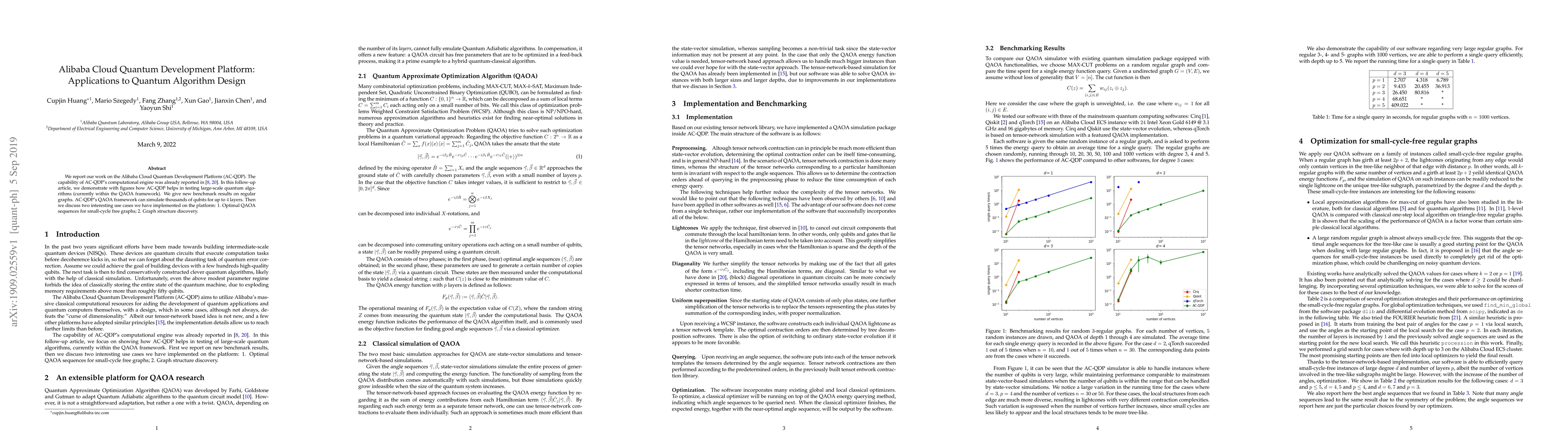 We report our work on the Alibaba Cloud Quantum Development Platform (AC-QDP). The capability of AC-QDP's computational engine was already reported in \cite{CZH+18, ZHN+19}.In this follow-up article, we demonstrate with figures how AC-QDP helps in testing large-scale quantum algorithms (currently within the QAOA framework). We give new benchmark results on regular graphs. AC-QDP's QAOA framework can simulate thousands of qubits for up to $4$ layers. Then we discuss two interesting use cases we have implemented on the platform: 1. Optimal QAOA sequences for small-cycle free graphs; 2. Graph structure discovery.